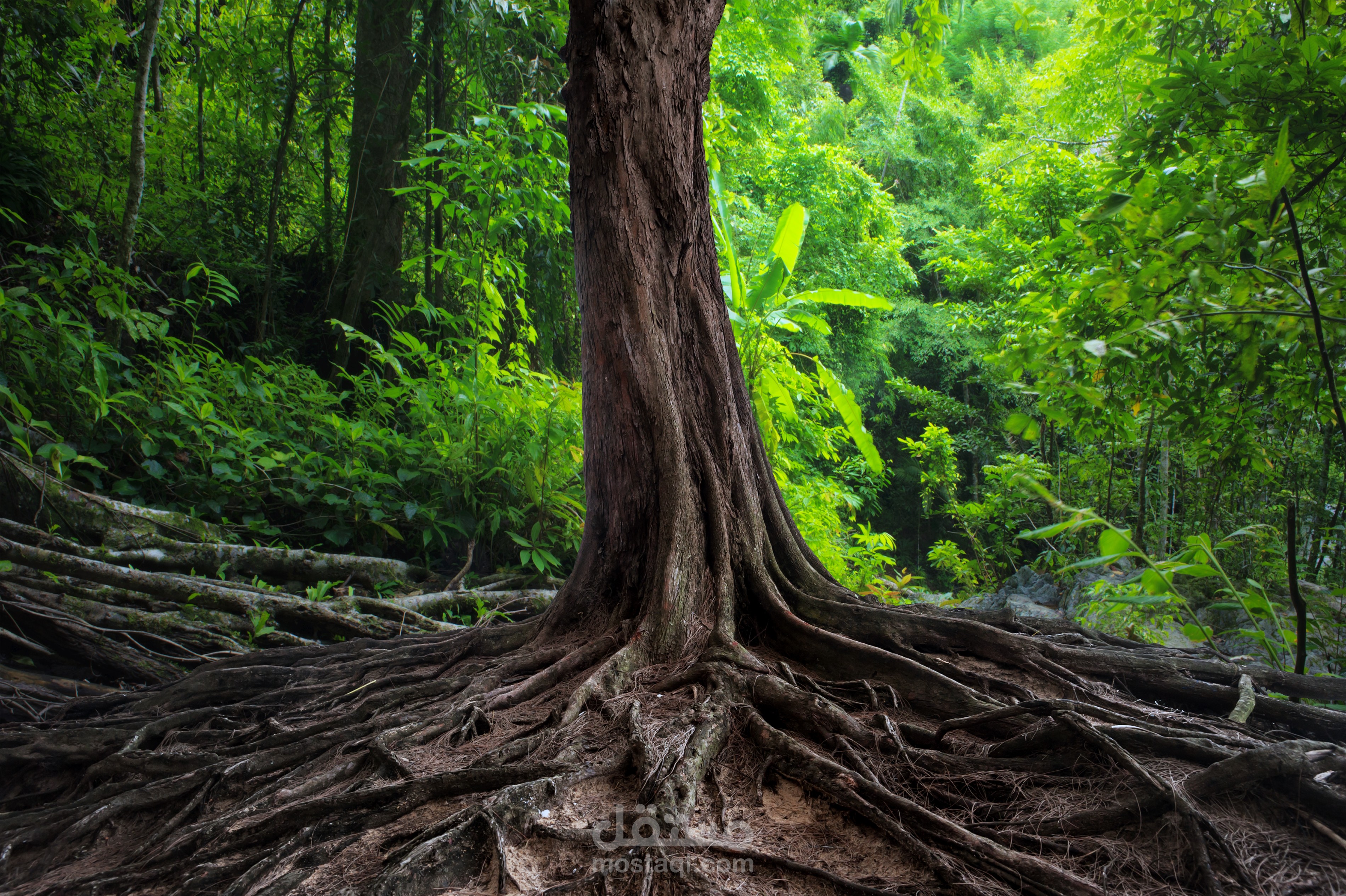 التصميم عبارة عن مشهد خيالي (Fantasy Scene) داخل غابة مظلمة يملؤها الغموض والرهبة، حيث يظهر غزال ضخم بقرون طويلة وأعين مضيئة يقف شامخًا على صخرة وسط الأشجار الكثيفة. يواجهه رجل صغير يحمل شعلة مضيئة، مما يعكس صراعًا بين الإنسان وقوة الطبيعة الغامضة.