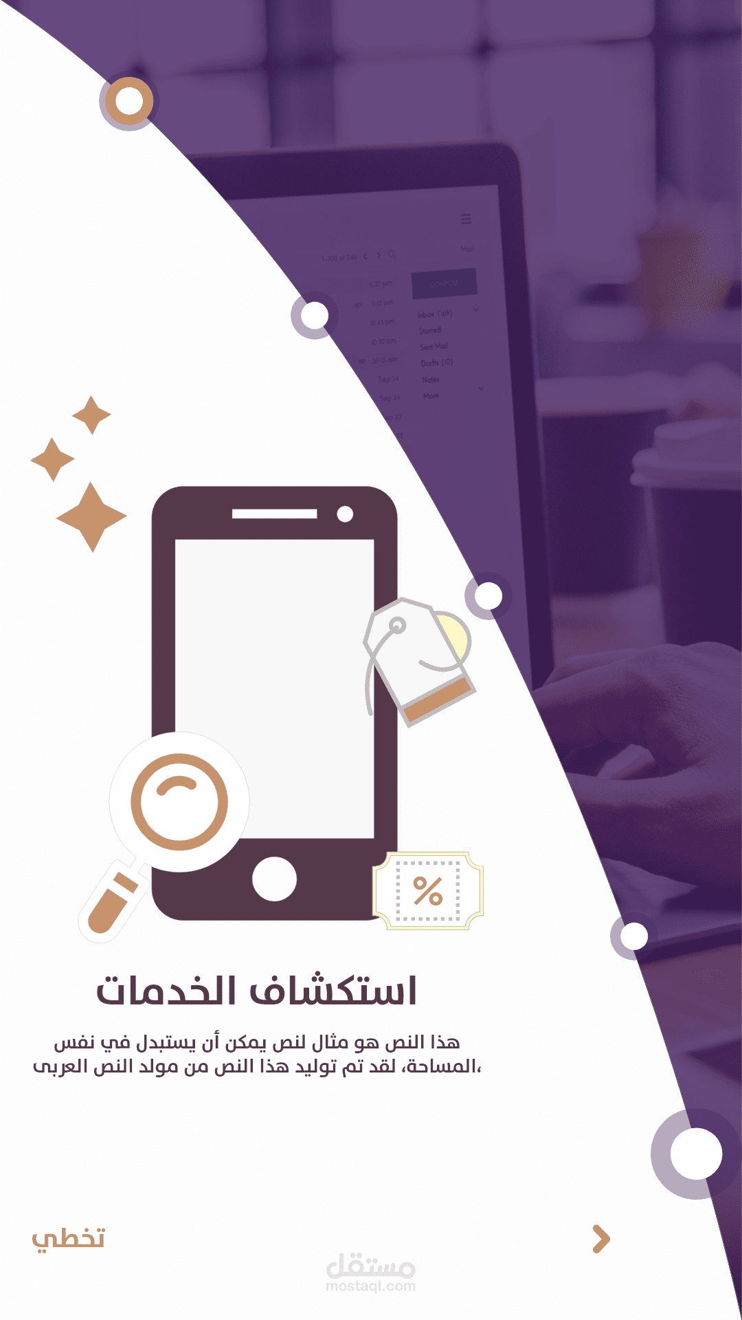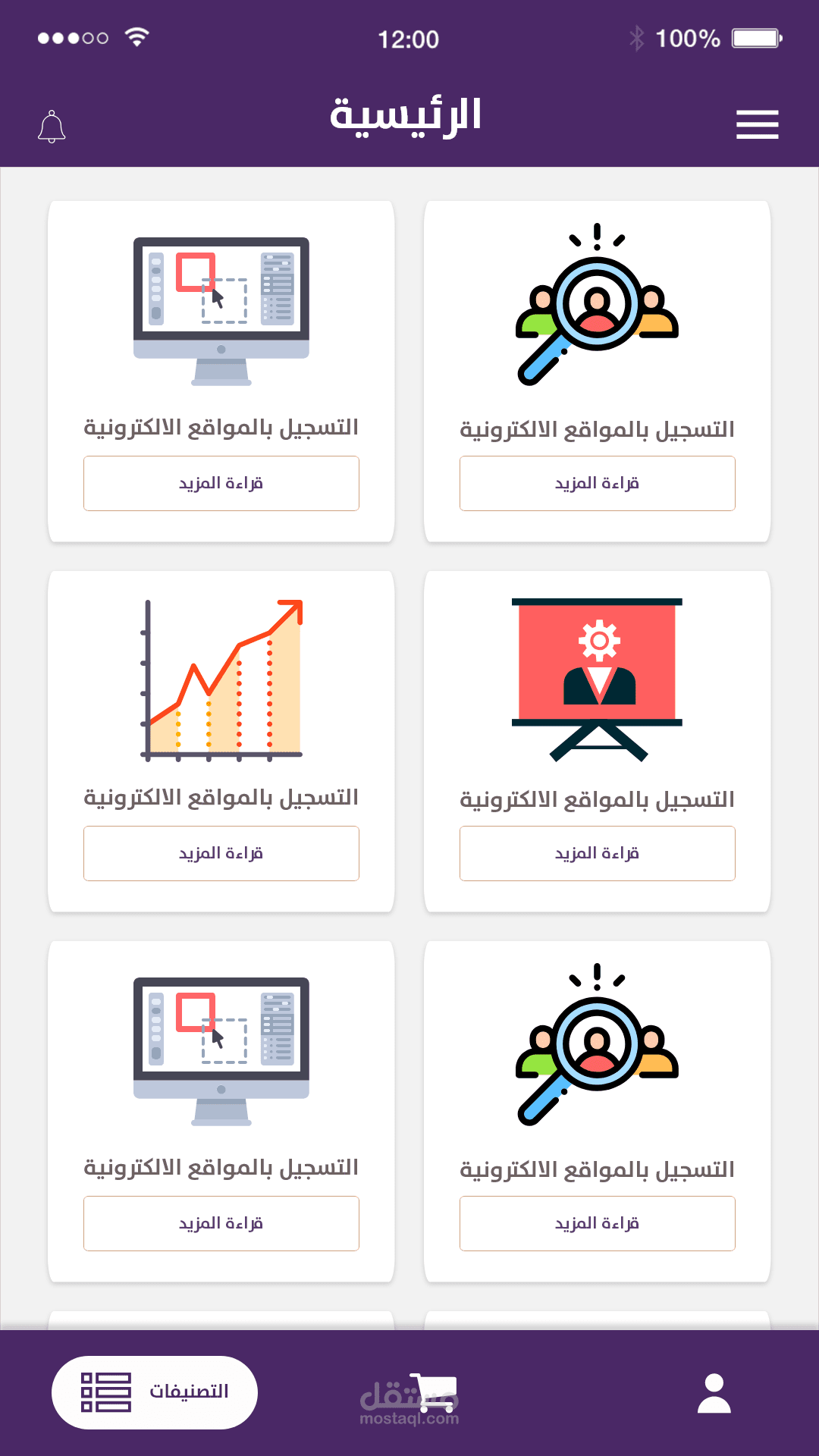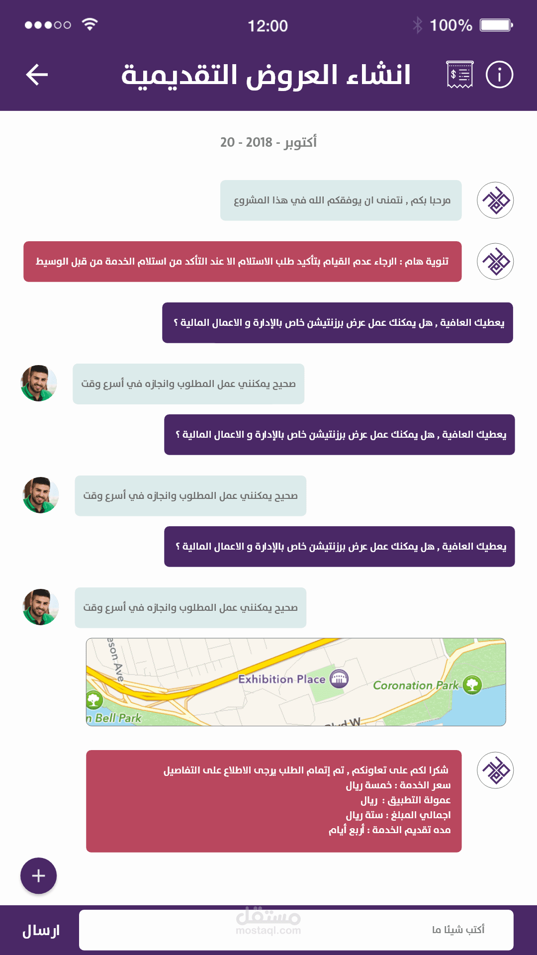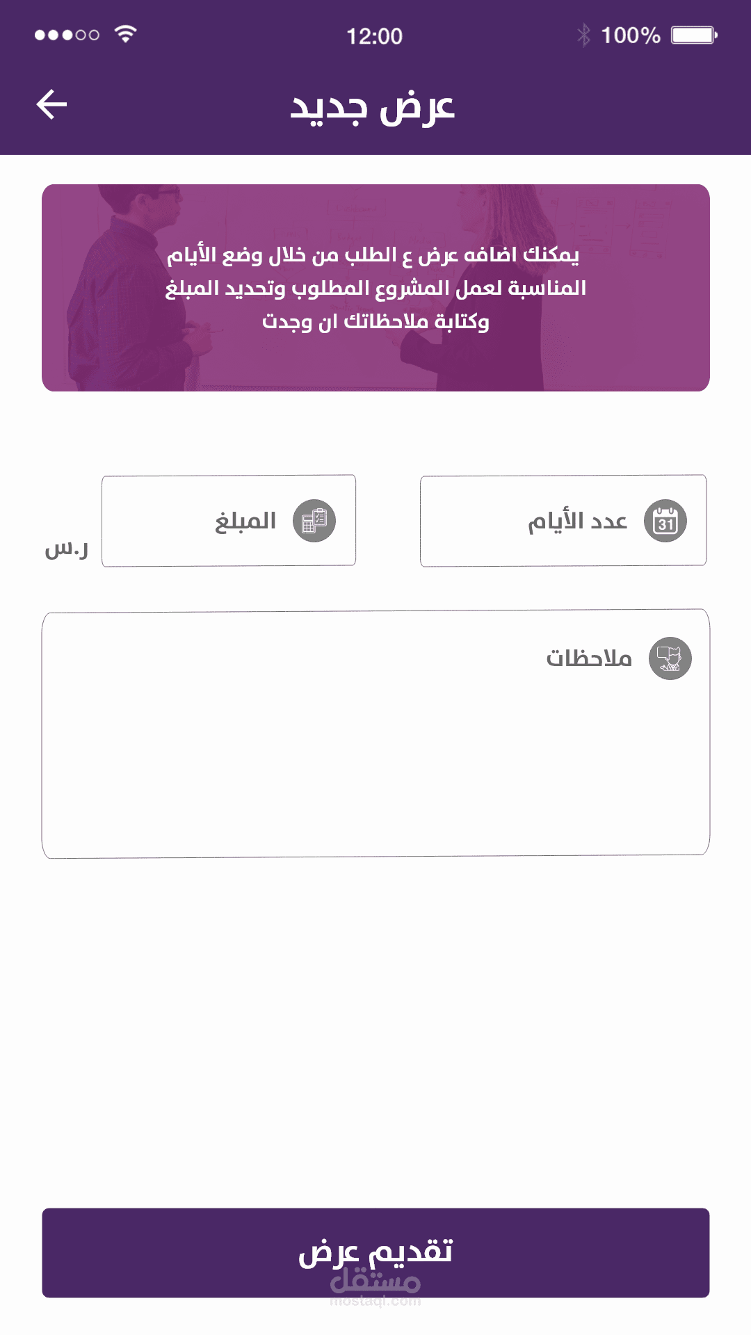 تطبيق يعتبر كحلقة وصل بين العملاء ومزودي الخدمات ، حيث يعمل التطبيق تحت عدة تصنيفات ( التسجيل في المواقع الحكومية ، التصميم ، الموشن جرافيك ، كتابة الخطابات والمعاريض والشكاوى .. إلخ ) ويقوم العميل بإنشاء طلب لأي خدمة ضمن هذه التصنيفات وببدأ بتلقي العروض من مزودي الخدمات ثم يوافق على اي عرض يراه مناسباً وتبدأ محادثة بينهما لإتمام الصفقة ثم يحصل مزود الخدمة على تقييم من قبل العميل.