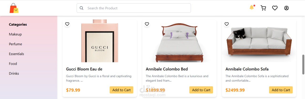 product data. User authentication and data storage using Firebase. Integration with a fake API to fetch and display