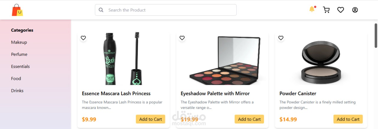 a fake API to simulate product data fetching. State management with Redux for efficient handling of shopping cart and
