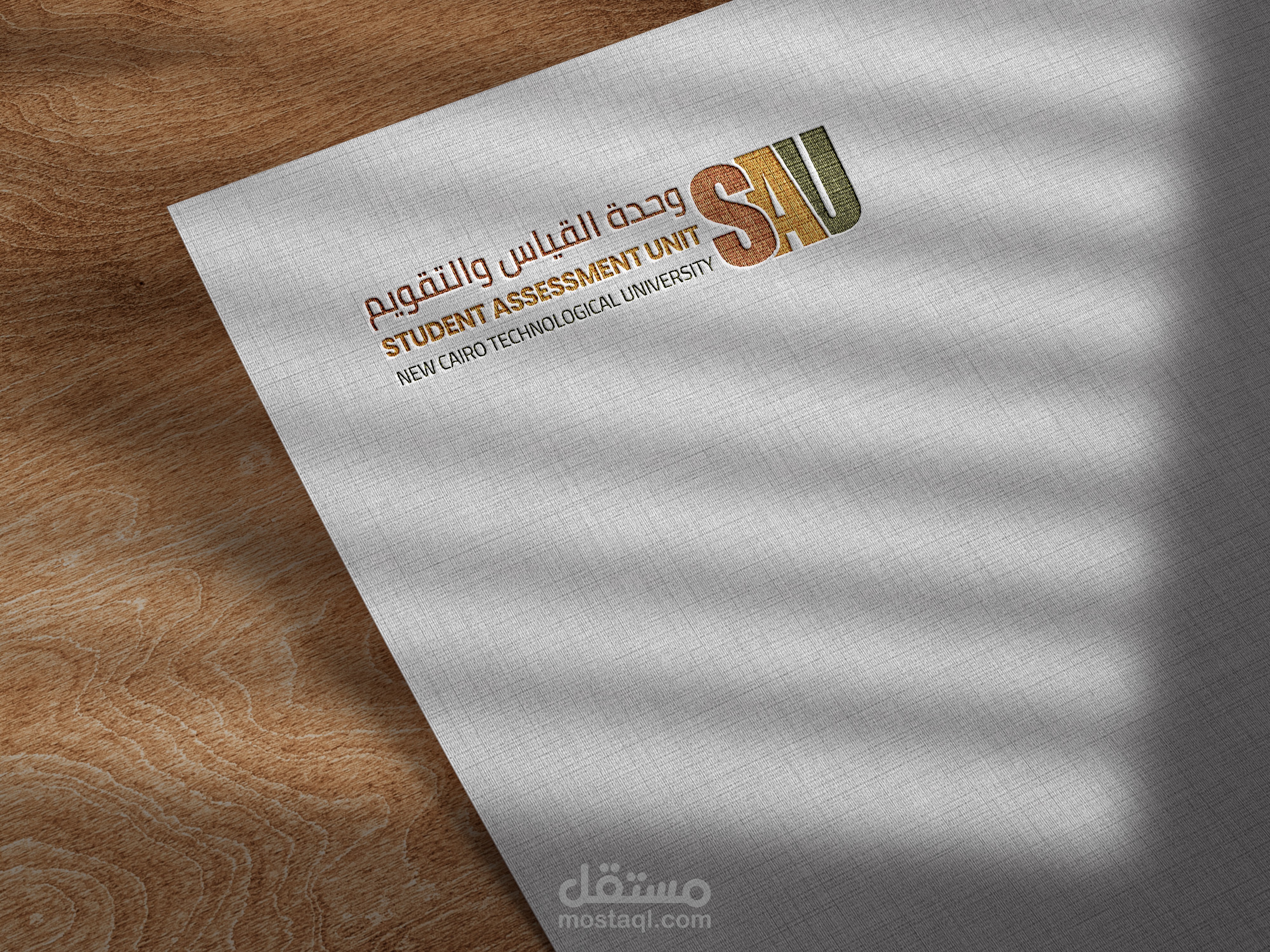 اللوجو يحتوي على اختصار الوحدة (SAU) بشكل بارز في المنتصف، مدعوم بالاسم الكامل باللغتين العربية والإنجليزية أسفله، بما يعزز الهوية المؤسسية ويجعلها مفهومة ومميزة للجميع.