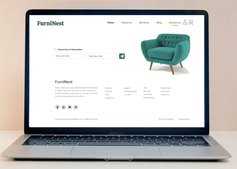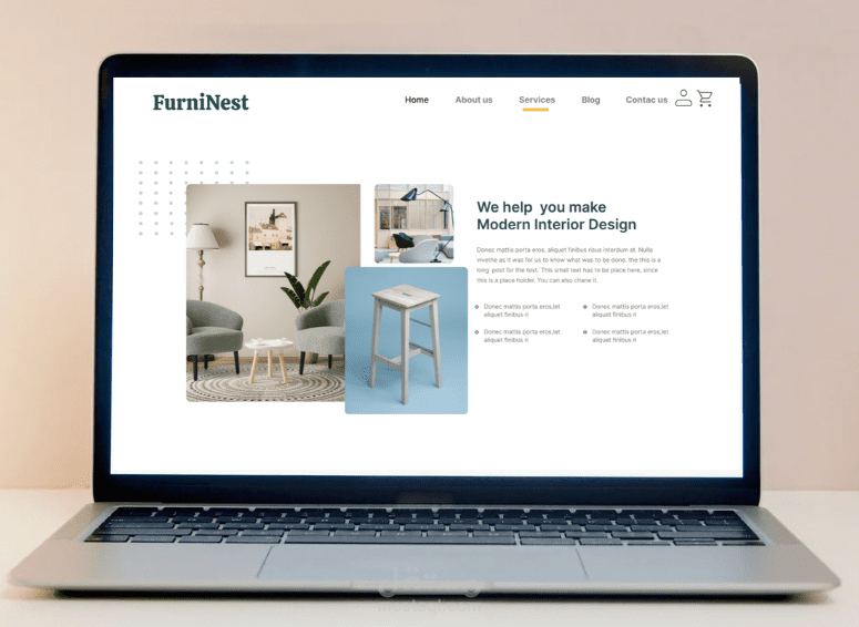 "تصميم واجهة موقع FurniNest بيعكس هوية عصرية وأنيقة لمتجر إلكتروني متخصص في بيع الأثاث. ركزت في التصميم على البساطة وسهولة الاستخدام مع ألوان دافئة وخطوط واضحة بتعكس فكرة الراحة والدفء اللي بيرمز ليها اسم FurniNest. الواجهة بتوفر تجربة مستخدم سلسة من أول دخول الزائر لحد استعراض المنتجات وإتمام عملية الشراء، مع إبراز العروض والأقسام الرئيسية بشكل منظم وجذاب