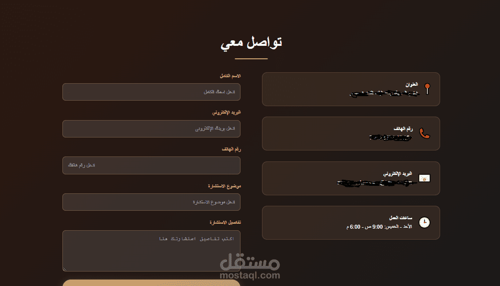 3. تسهيل التواصل مع العملاء عبر نموذج مراسلة وحجز المواعيد.