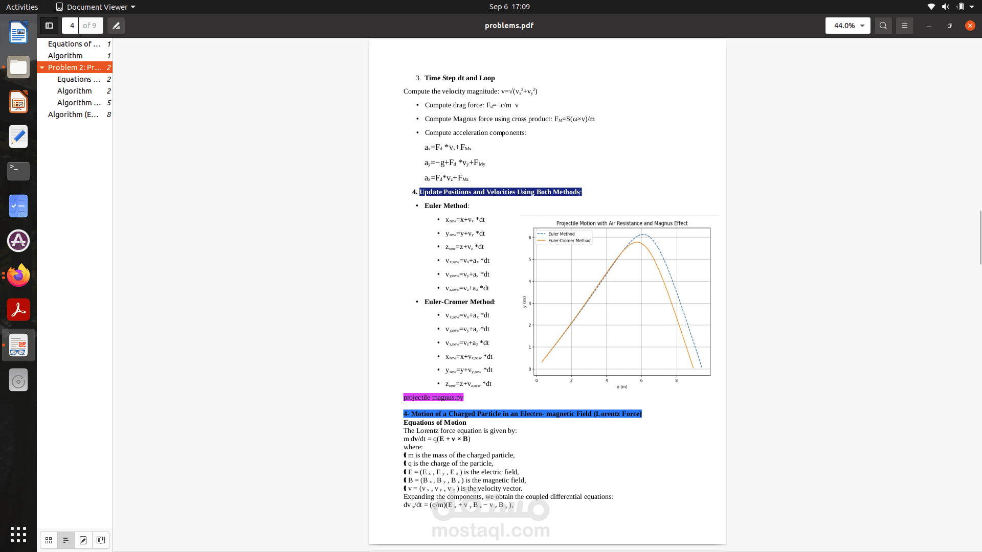 Simulation of physical systems (pendulum, projectile, Lorentz force).