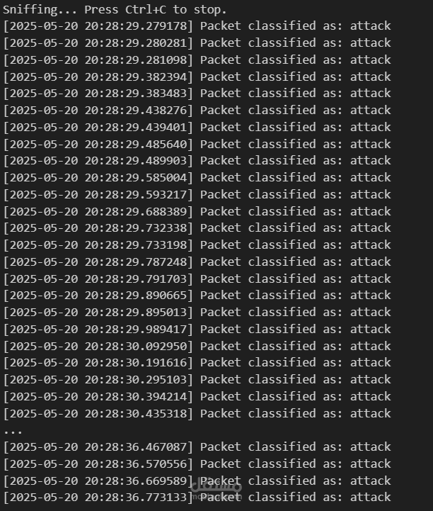 التصنيف في الوقت الحقيقي: sniff(prn=classify_packet)
