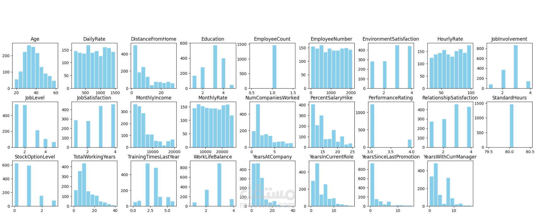 داتا مقدمة من شركة IBM خاصة بالموارد البشرية، وبتستخدم للتنبؤ بترك الموظفين للعمل (Attrition) أو استمرارهم. بتحتوي على معلومات عن الموظفين زي العمر، الوظيفة، مستوى التعليم، الراتب، سنوات الخبرة، بيئة العمل، وساعات السفر. الهدف الأساسي منها هو تحليل العوامل اللي بتأثر على استقرار الموظفين وفهم أسباب الاستقالات.