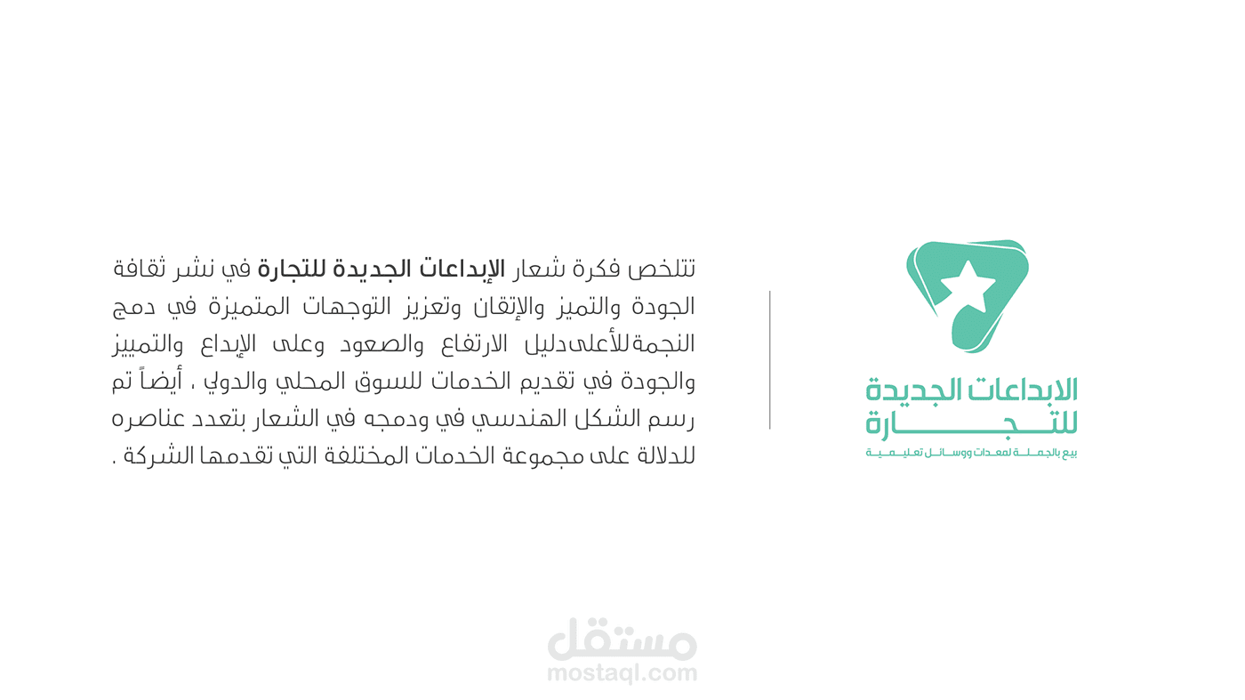 يتمثل موضوع الابتكارات الجديدة في التجارة في نشر ثقافة الجودة والتميز ، وتعزيز الاتجاهات المميزة في دمج أعلى نجم للنهضة والارتفاع والإبداع والتميز والجودة في تقديم الخدمات إلى المجتمع المحلي. والسوق الدولية. تم رسم النموذج الهندسي أيضًا في شعاره مع عناصره المختلفة للإشارة إلى مجموعة الخدمات التي تقدمها الشركة