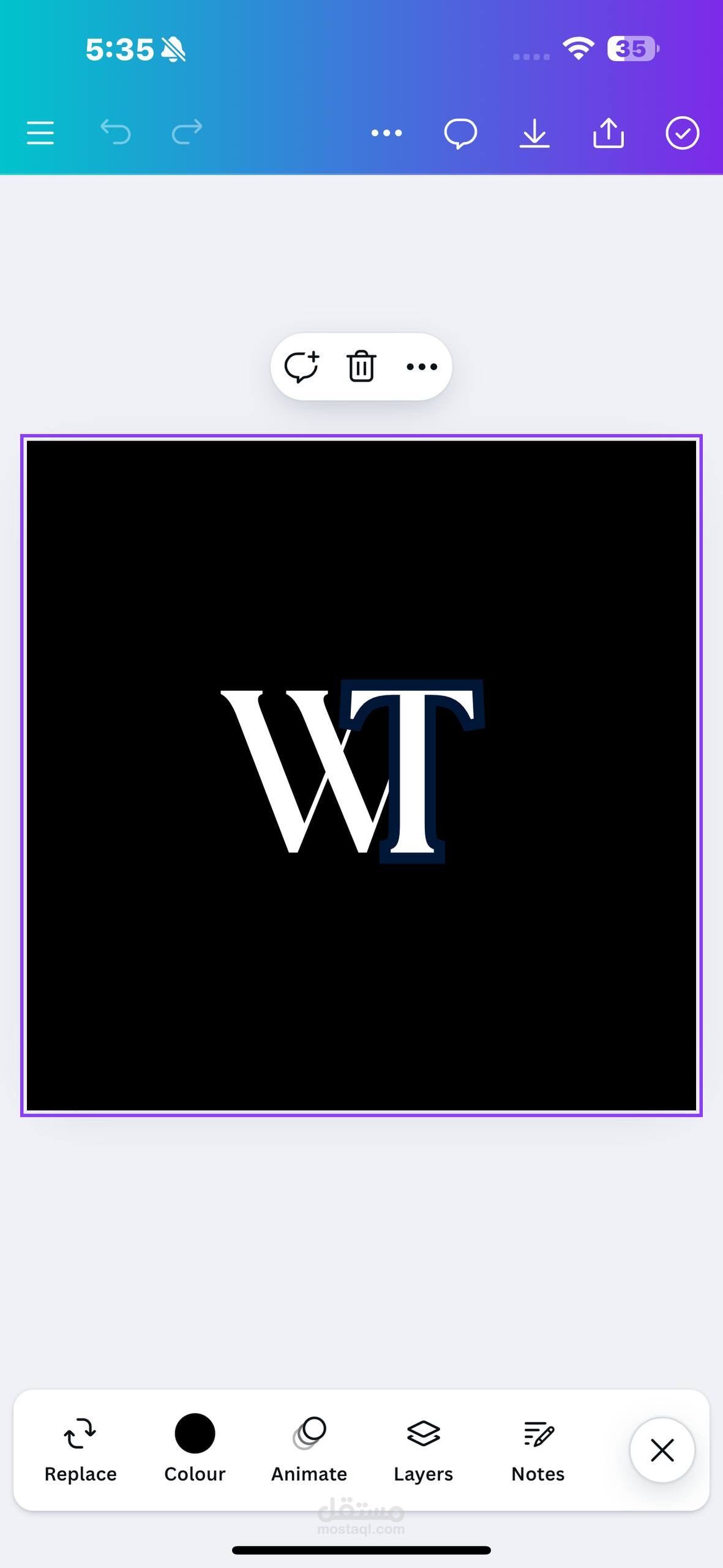 This work is a minimalist logo design featuring the overlapping letters “W” and “T.” The “W” is rendered in white, while the “T” is in white with a subtle dark blue outline, giving it emphasis and contrast. Both letters are set against a solid black background, which enhances their sharpness and elegance. The composition conveys professionalism, simplicity, and strength, making it suitable for branding purposes such as a company, organization, or personal identity that uses the initials “WT.”