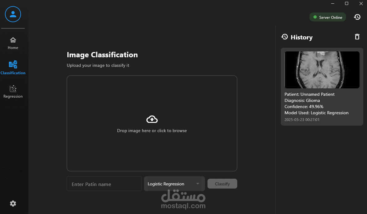 طورت نموذجًا يعتمد على تقنيات التعلم العميق (Deep Learning) لتصنيف صور أورام الدماغ من صور الرنين المغناطيسي (MRI). استخدمت شبكات عصبية تلافيفية (CNNs) مدربة على بيانات طبية لتحديد نوع الورم بدقة عالية.