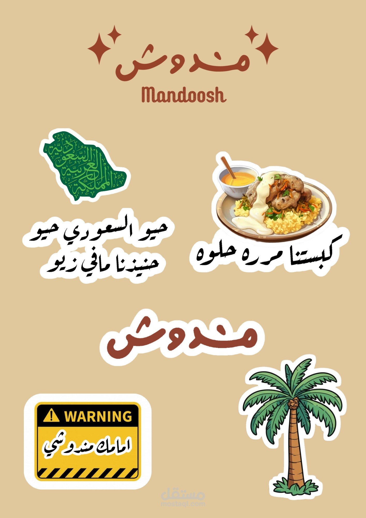 أستيكرات بعبارات محلية (زي: "يبغالها مندوشة" – "دسم حنون").