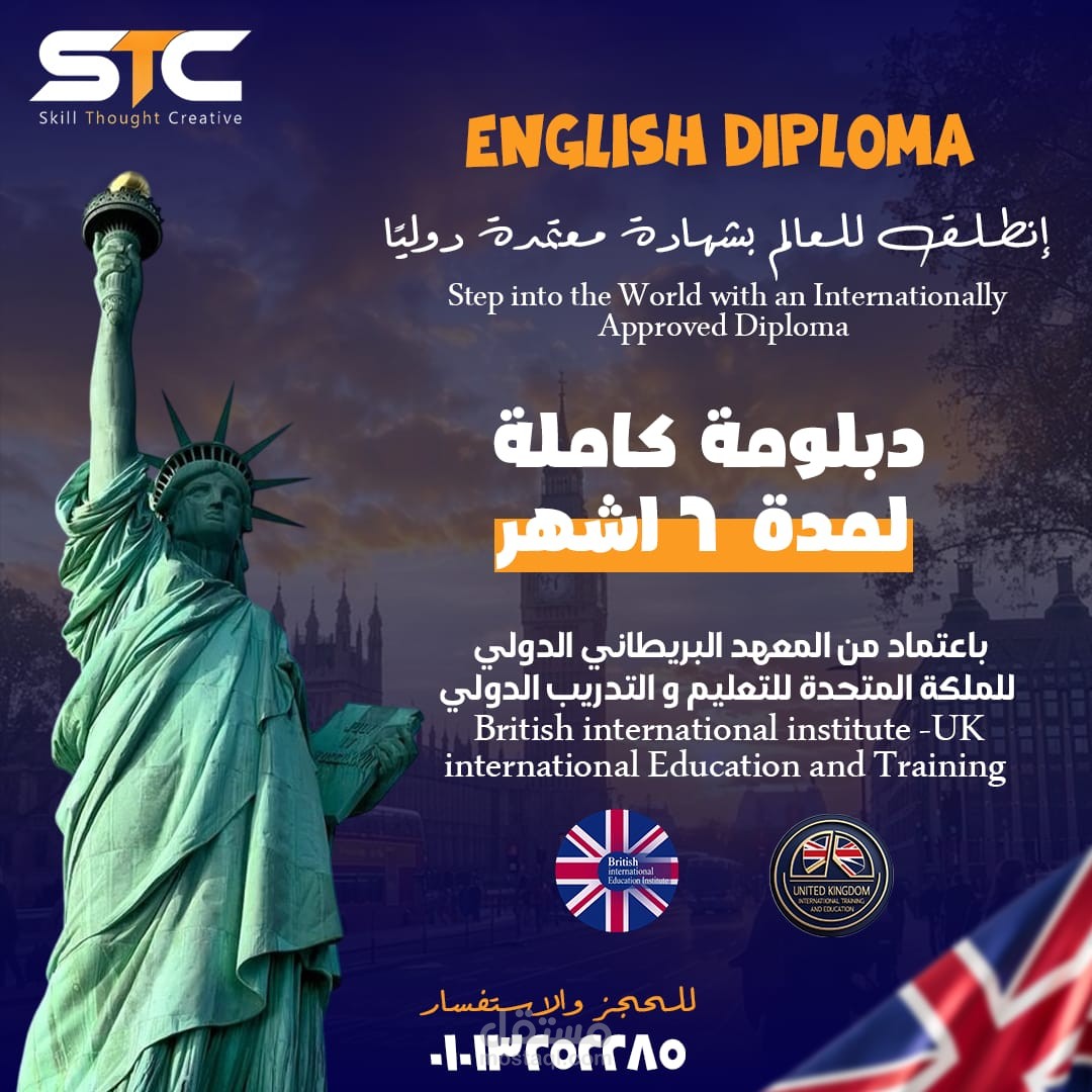 هذا العمل للاكادمية اسمها ATC Academy عباره عن اعلان لدبلومة اللغة الإنجليزية
