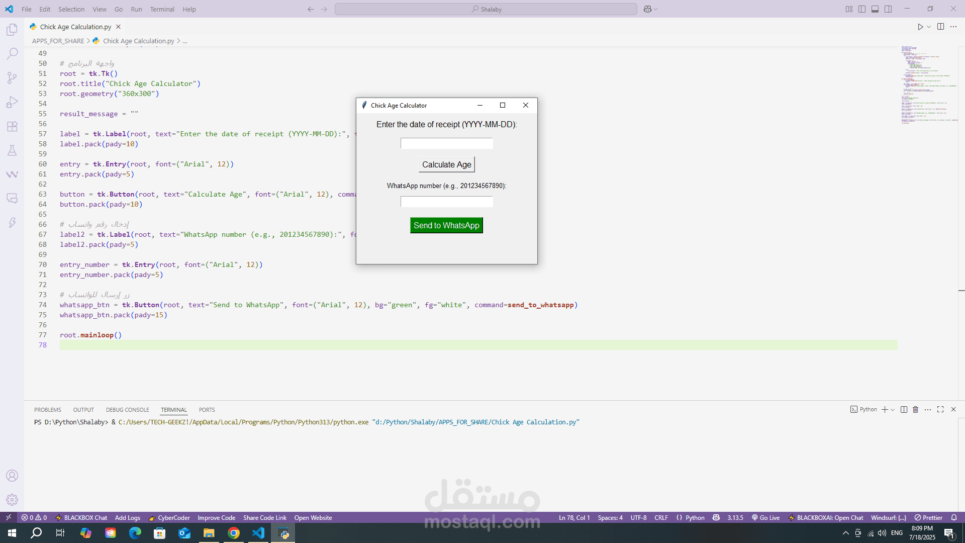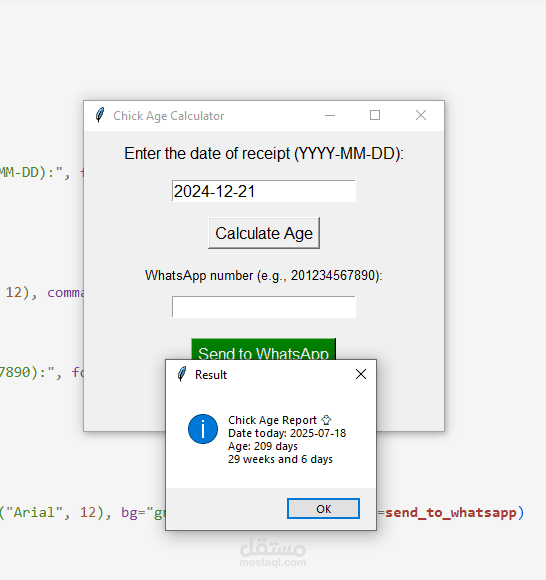 برنامج لخدمة مربي اللحوم والبيض، يهدف إلى تسهيل حساب أعمار الحيوانات والطيور المختلفة، وذلك بإدخال عمر الطائر من عمر يوم واحد، ثم حساب العمر. كما يوفر البرنامج خاصية التواصل عبر الواتس آب لتسهيل التعامل مع الأطباء البيطريين.