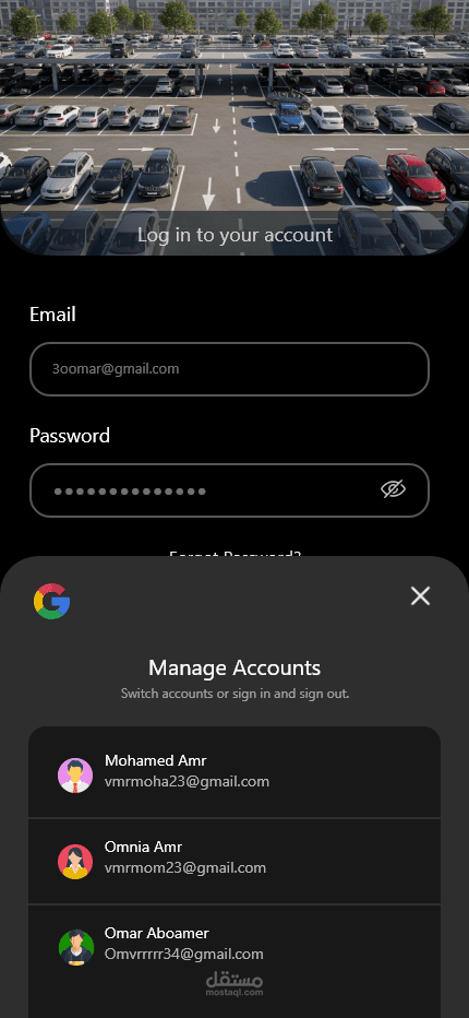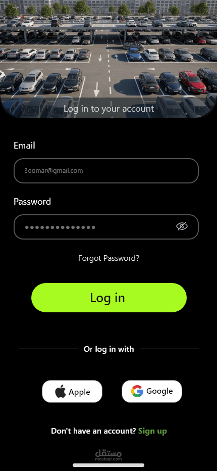 قمت بتصميم واجهة مستخدم (UI/UX) لتطبيق مخصص لحجز مواقف السيارات (Parking App) باستخدام Adobe XD.