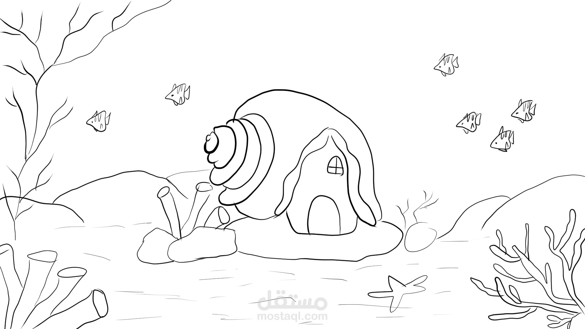 رسم خلفية كرتونية لبيت تحت الماء على برنامج فوتوشوب