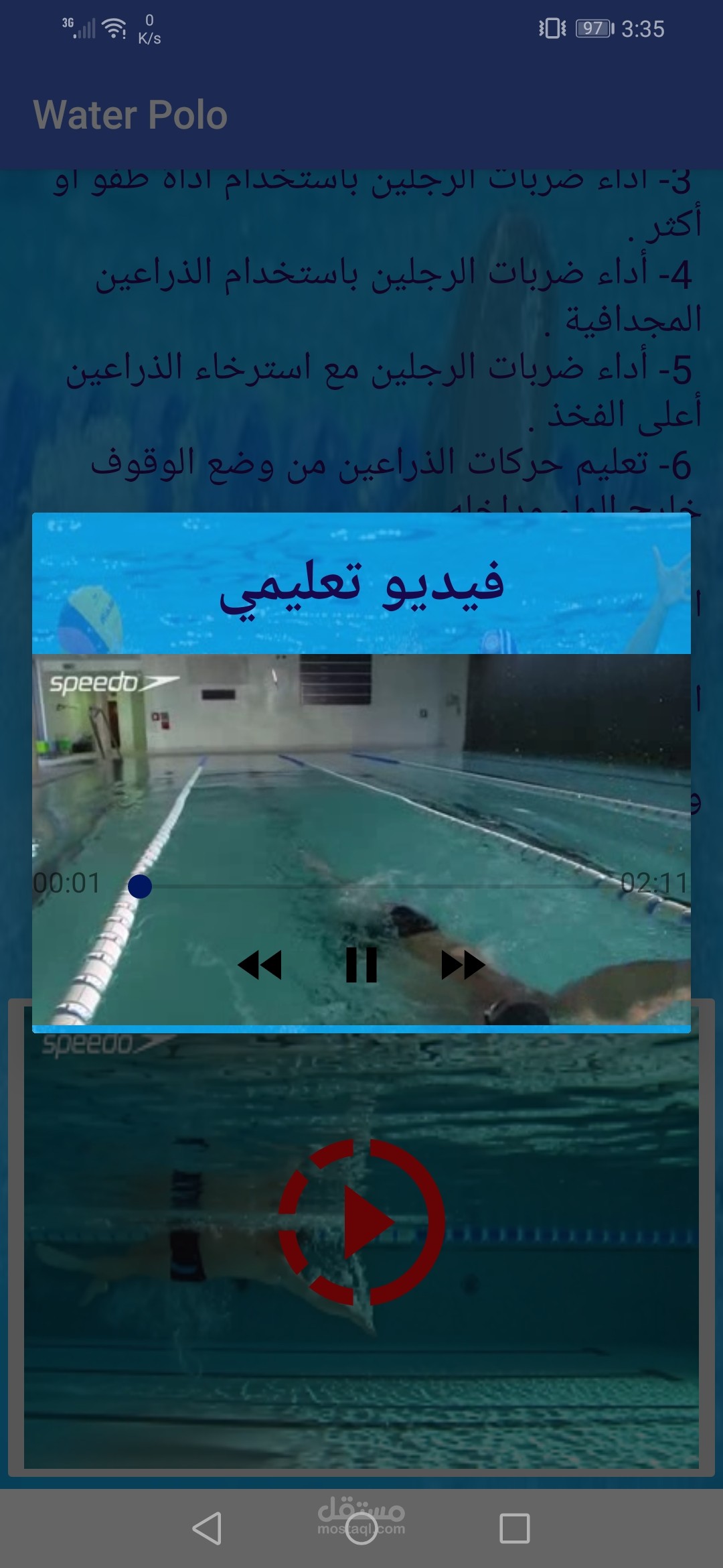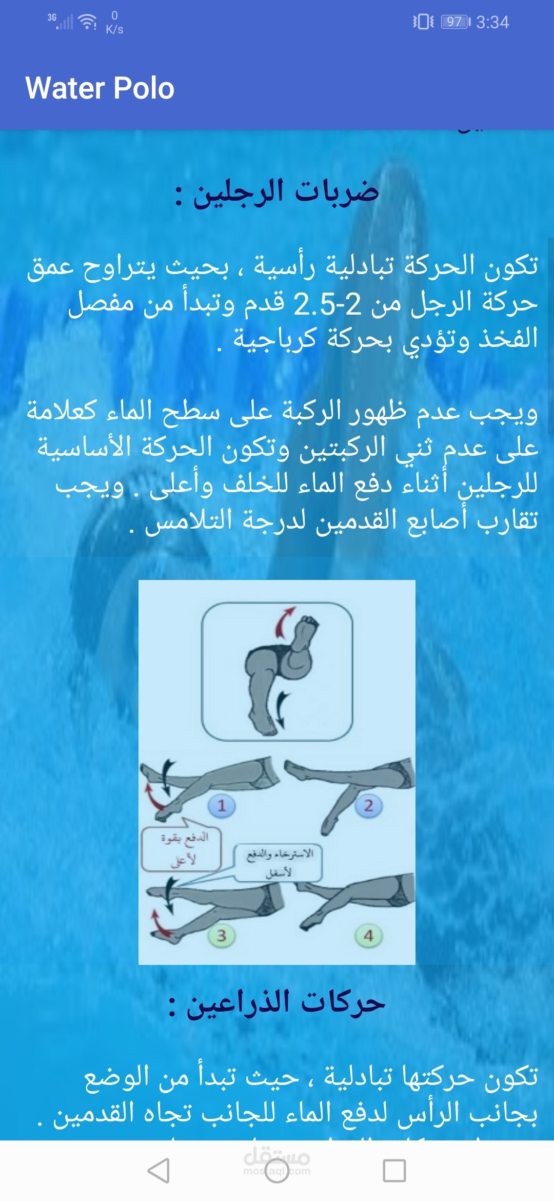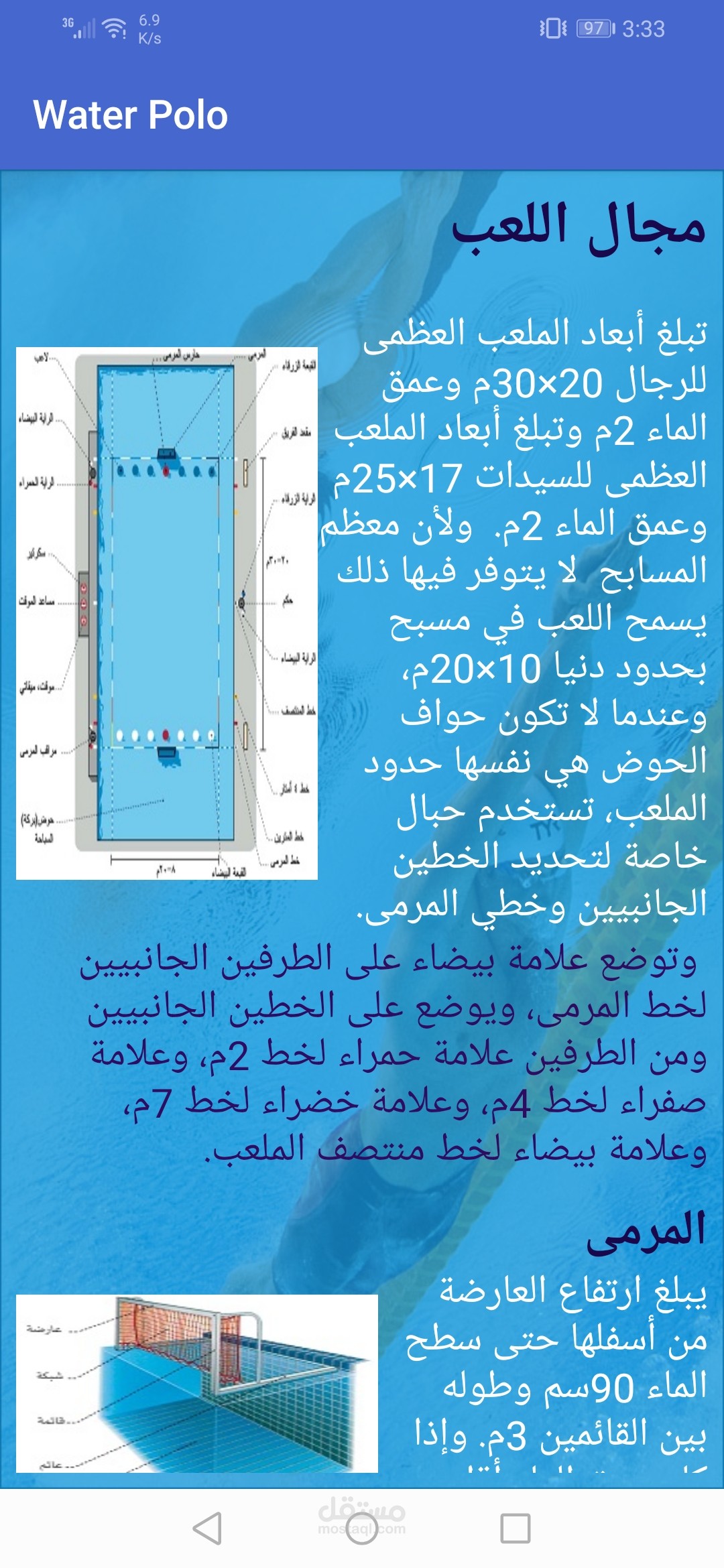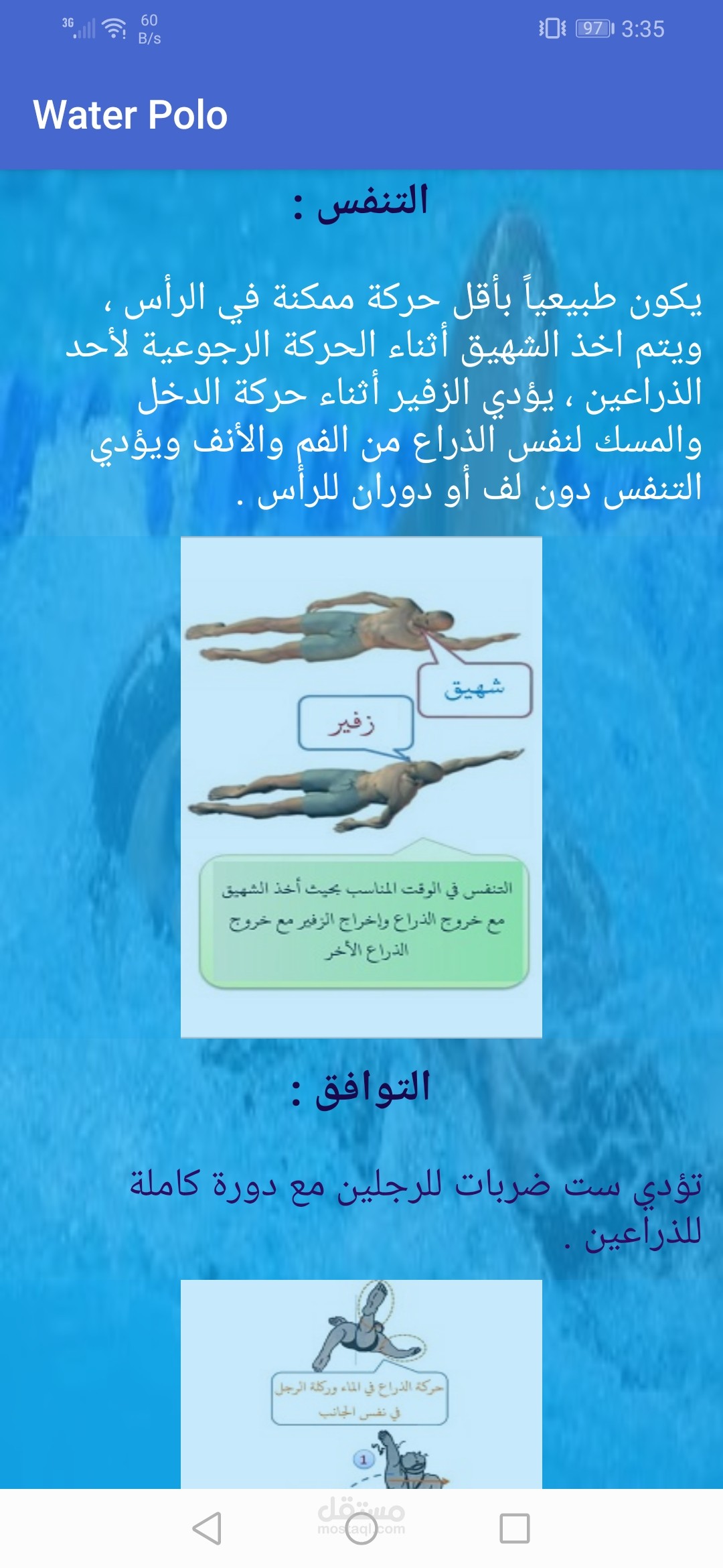 تطبيق اندرويد متخصص في تعليم الشباب رياضه كره الماء كما يوجد به دردشه خاصه بين المتدربين والمدرب
