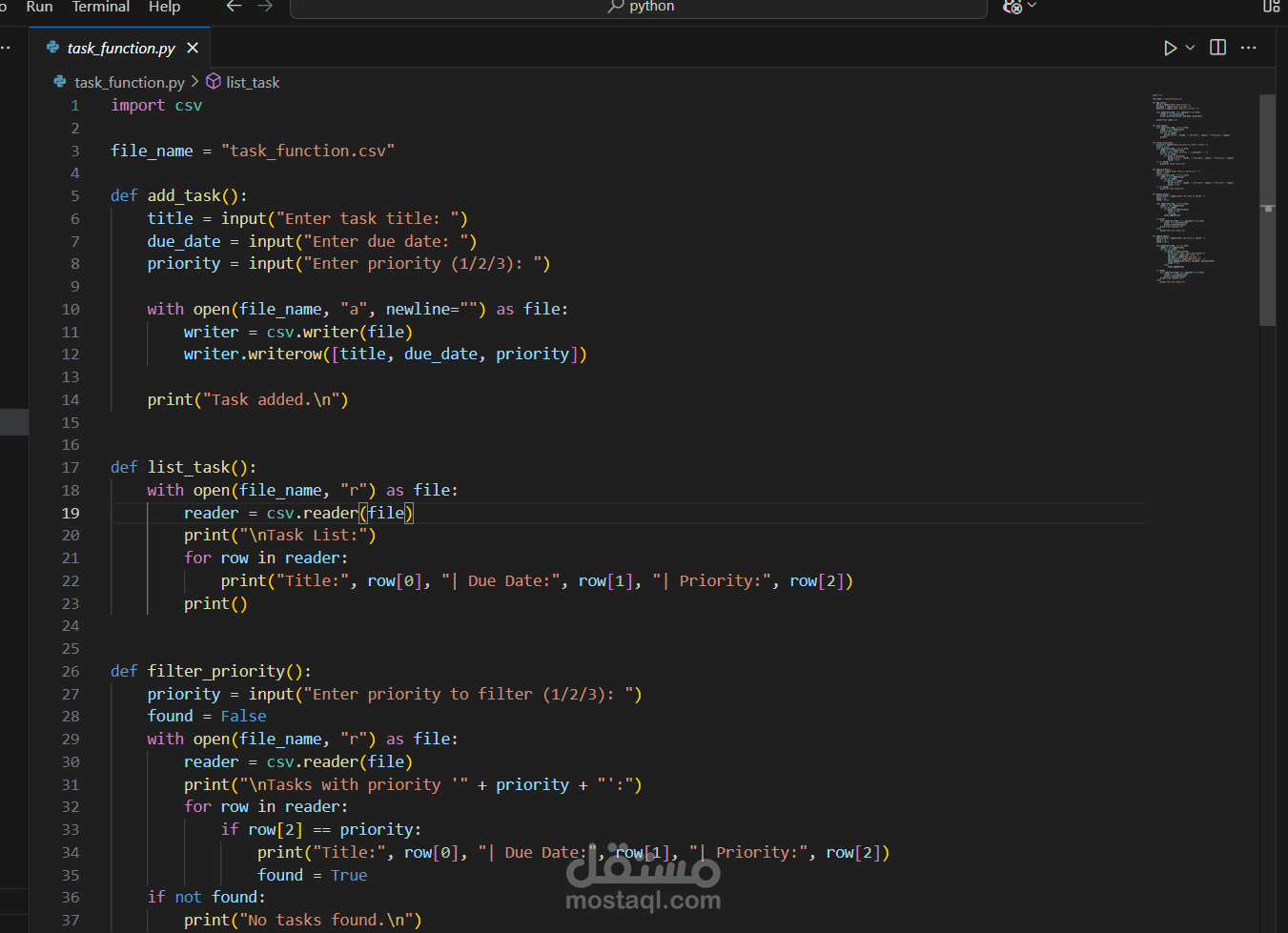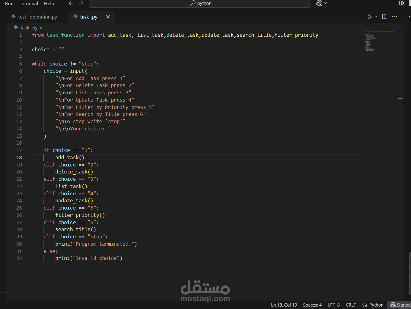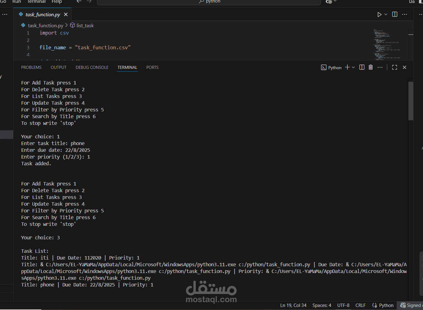 قمت بتطوير نظام إدارة مهام Task Management System باستخدام Python.