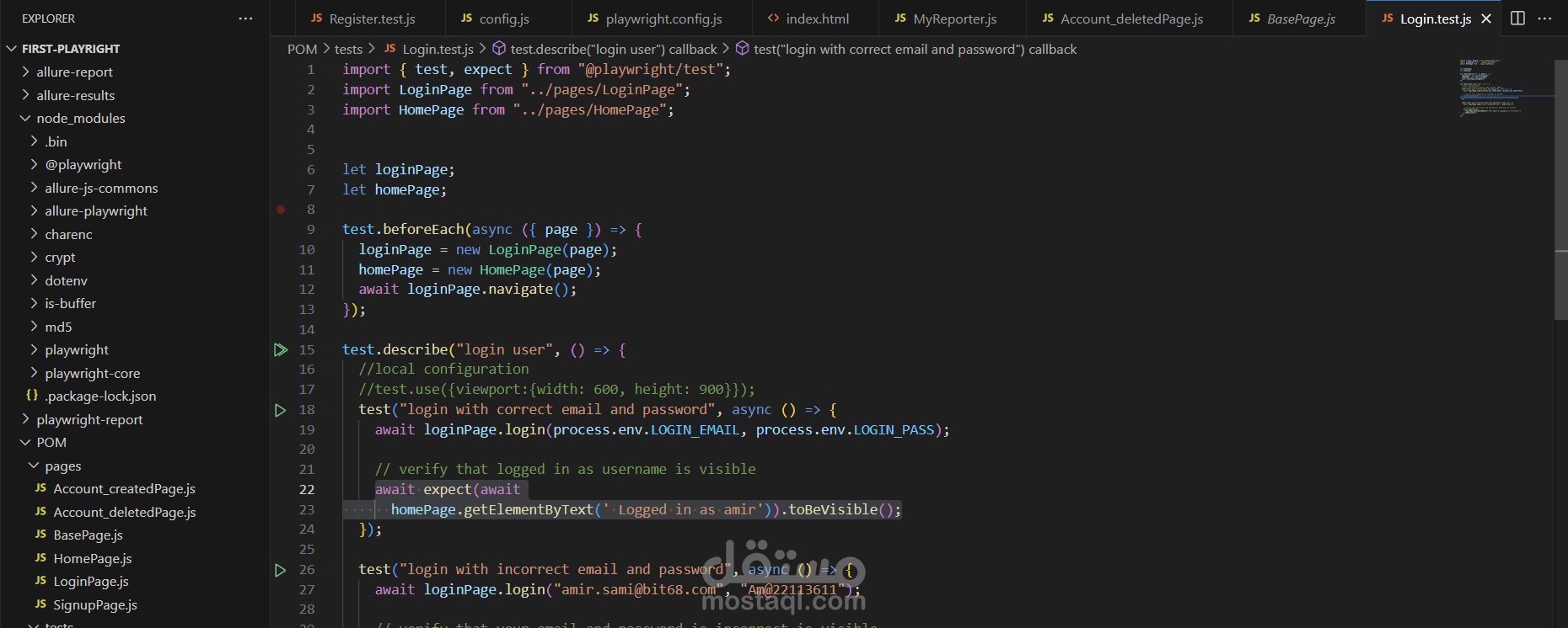 بناء أطر عمل اختبار قابلة لإعادة الاستخدام (مثل POM، Data-Driven، BDD).