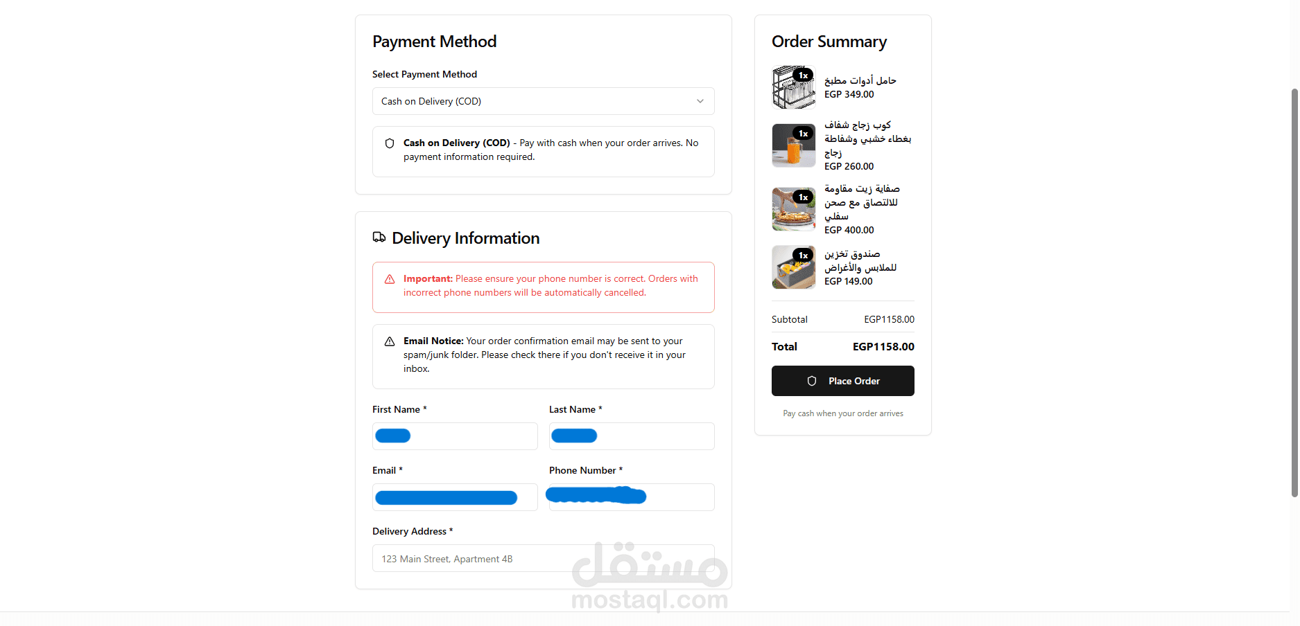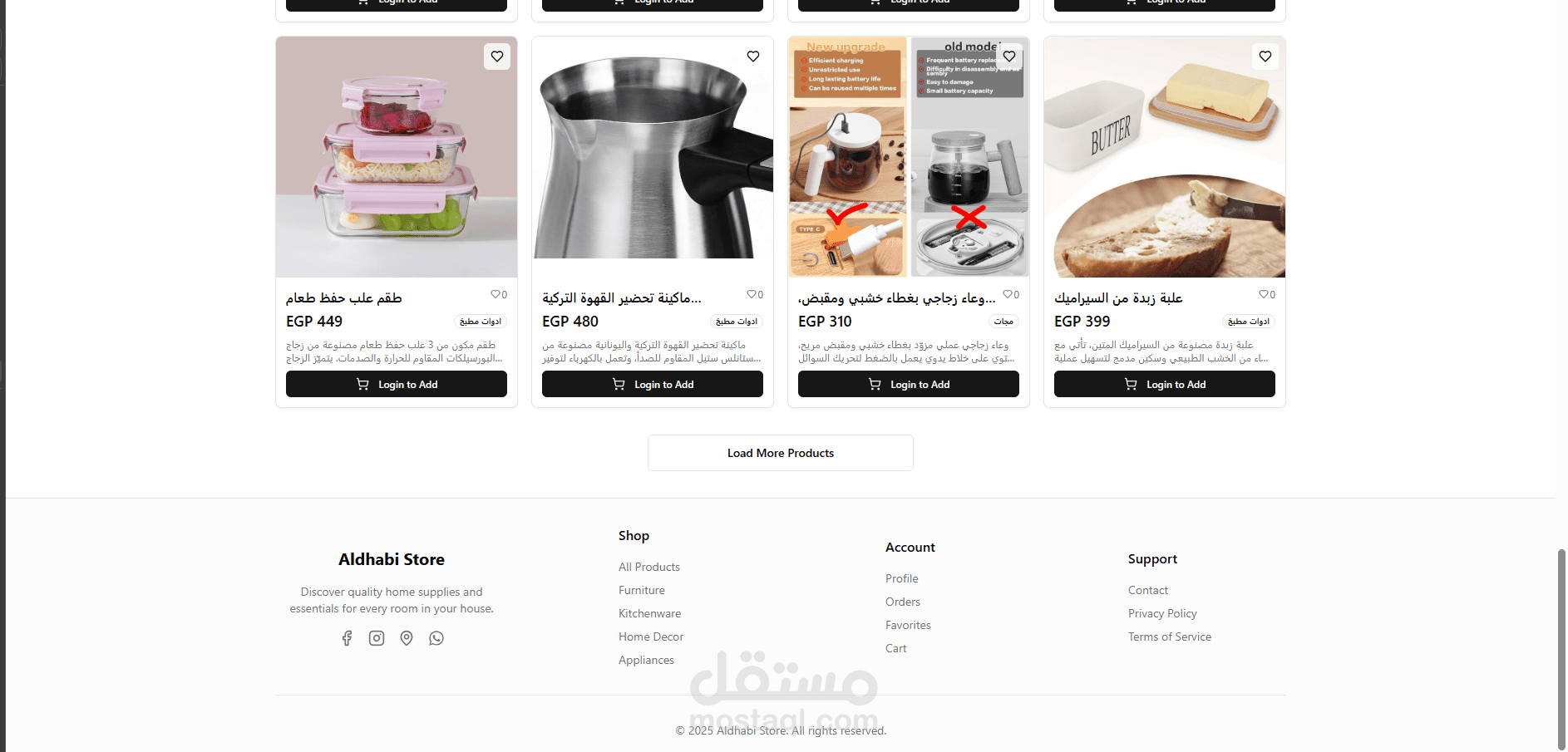 يدعم إضافة المنتجات، إدارة الطلبات، تسجيل الدخول عبر Google ، ونظام صلاحيات للمستخدمين.