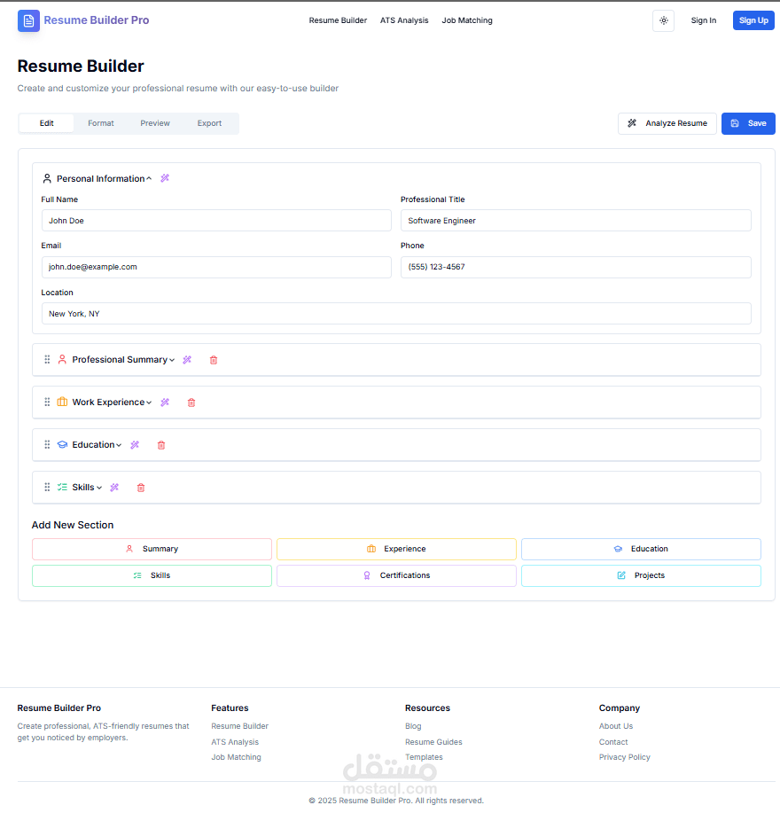 أولًا، من خلال CV Builder يتمكن المستخدم من إنشاء سيرة ذاتية احترافية ومنسقة بسهولة.