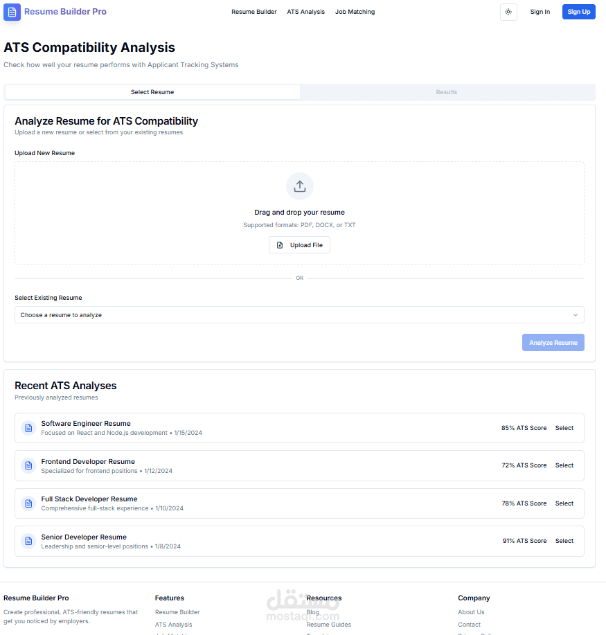 ثانيًا، يوفر النظام ATS Analysis الذي يقوم بتحليل السيرة الذاتية للتأكد من توافقها مع أنظمة تتبع المتقدمين، مع إعطاء ملاحظات عملية لزيادة فرص قبولها.