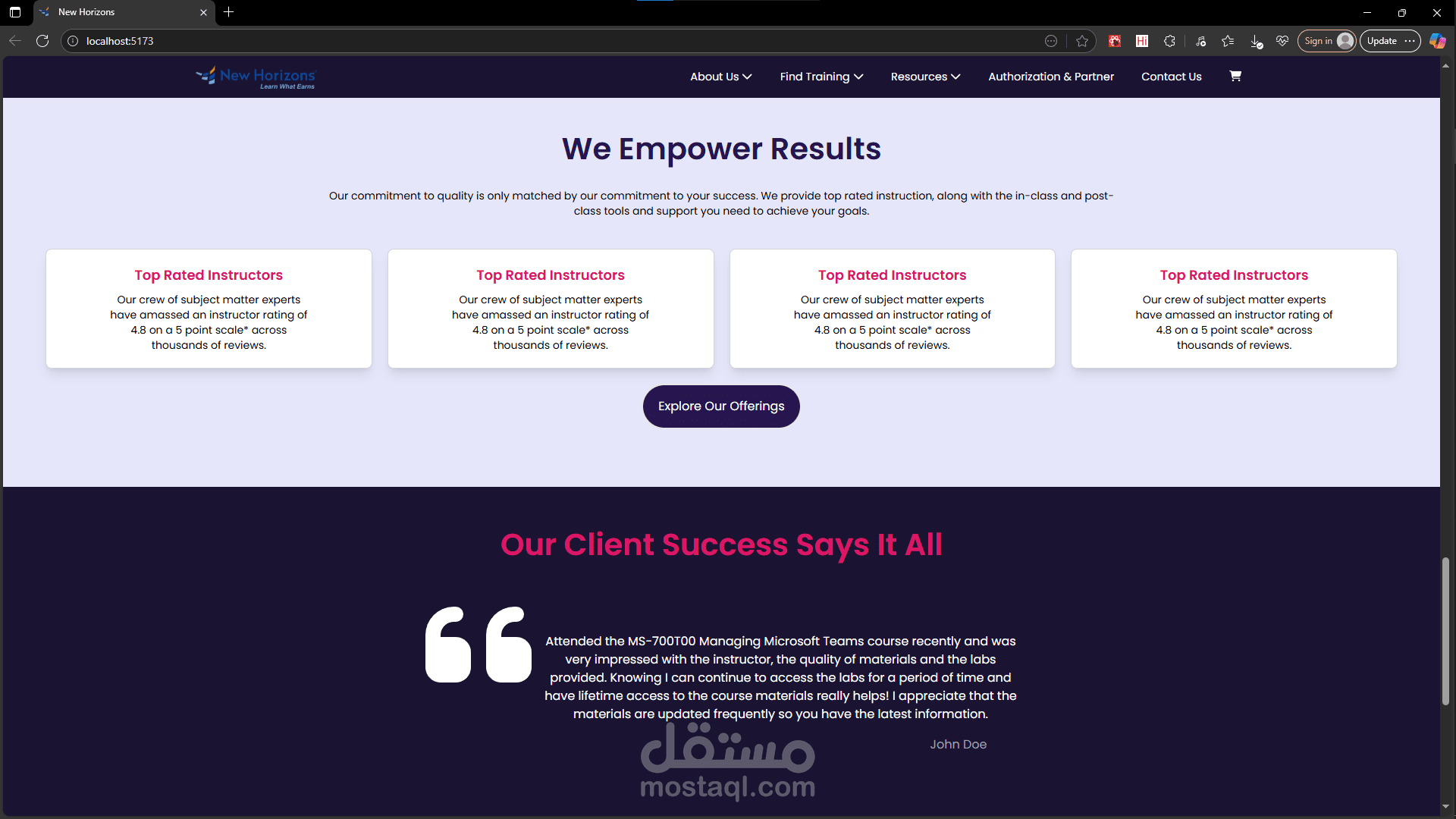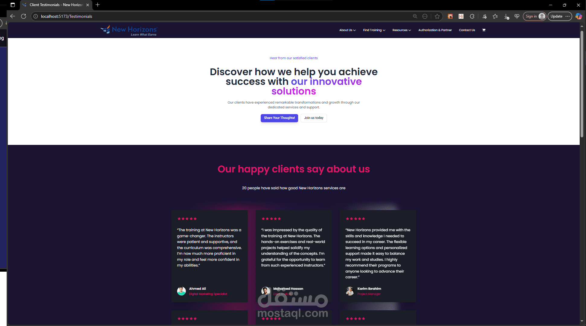 تصميم وتطوير نظام متكامل لإدارة الدورات التدريبية مع واجهة أمامية متجاوبة وخلفية قوية.