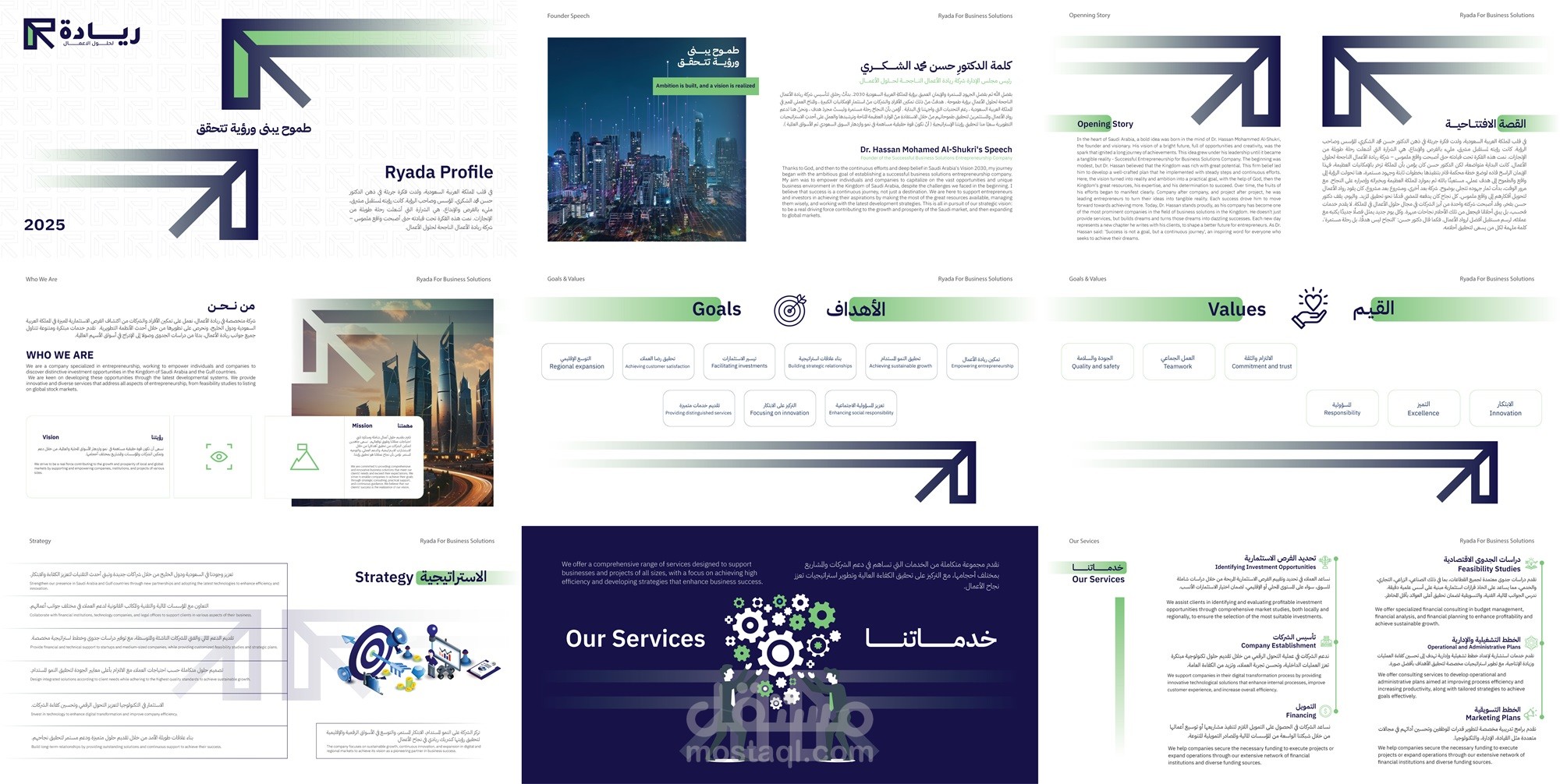 تم تنفيذ ملف تعريفي لبراند 'ريادة لحلول الأعمال'، الذي تم تأسيسه بقيادة الدكتور حسن محمد الشكري، والذي يُعد من الشركات الرائدة في المملكة العربية السعودية. يعكس الملف التعريفي القيم والرؤية المستقبلية للشركة في مجال تقديم حلول مبتكرة للأعمال، ويبرز مسيرتها الناجحة في توفير فرص الإبداع والنمو في بيئة الأعمال المحلية والدولية.
