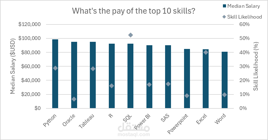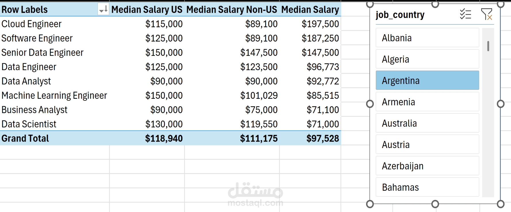 بصفتي شغوفة بالبيانات وباحثة سابقة عن عمل، بدأت هذا المشروع المبني على إكسل لاستخلاص رؤى قيمة حول سوق وظائف علم البيانات. باستخدام بيانات من إعلانات وظائف حقيقية، قمت بتحليل المسمّيات الوظيفية، الرواتب، المواقع، والمهارات الأساسية. ومن خلال أدوات مثل Power Query وPivotTables وDAX والمخططات، اكتشفت روابط مهمة بين امتلاك مهارات متعددة والحصول على رواتب أعلى، خاصة في Python، SQL، وتقنيات السحابة.