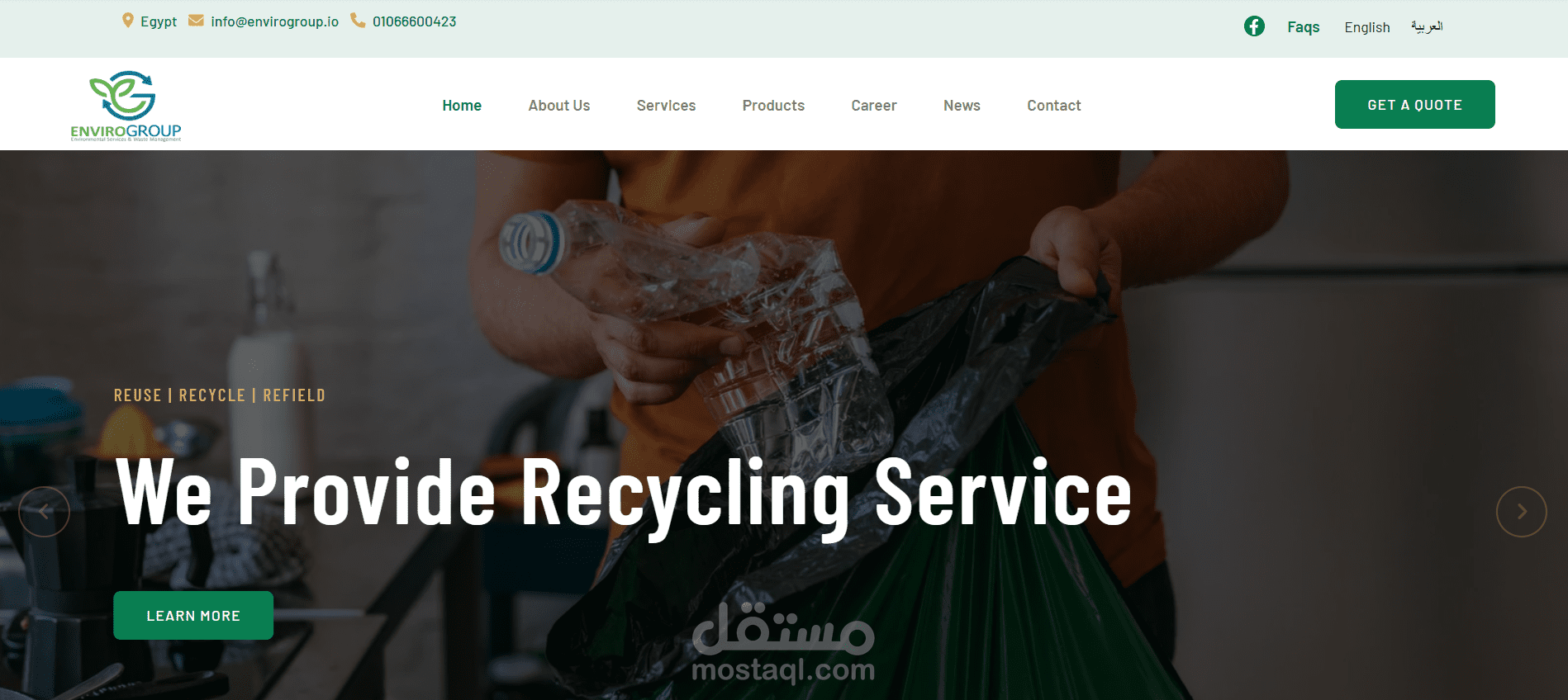 موقع الكترونى كامل ولوحة تحكم خاص ب اعادة المخلفات