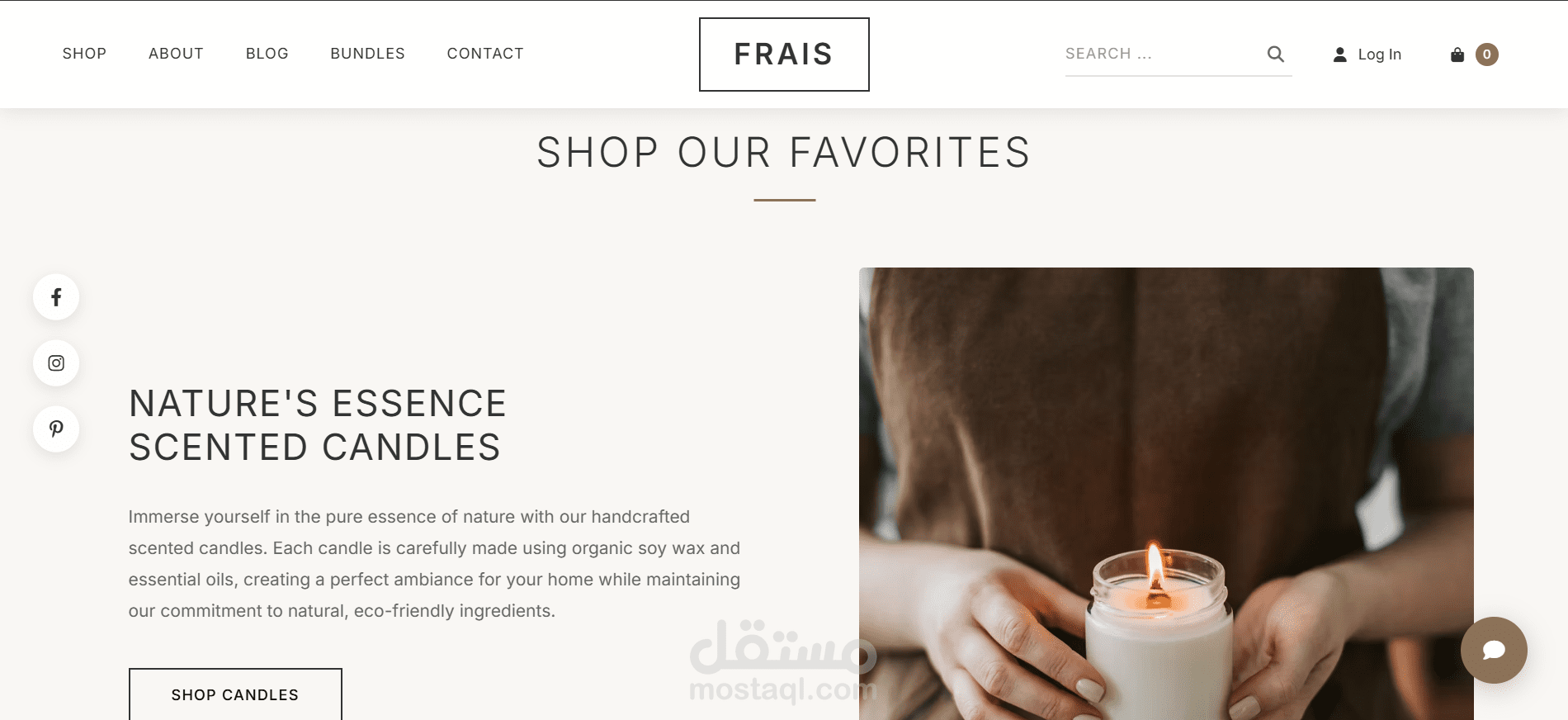 متجر إلكتروني أنيق يقدم شموعًا وصابونًا عضويًا مصنوعًا يدويًا، باستخدام مكونات طبيعية وصديقة للبيئة، مثل شمع الصويا والزيوت العطرية. يتميز الموقع بتصميم نظيف وتنقل سلس، مناسب لكل من الباحثين عن تجربة تسوق مريحة وذوق أنيق.