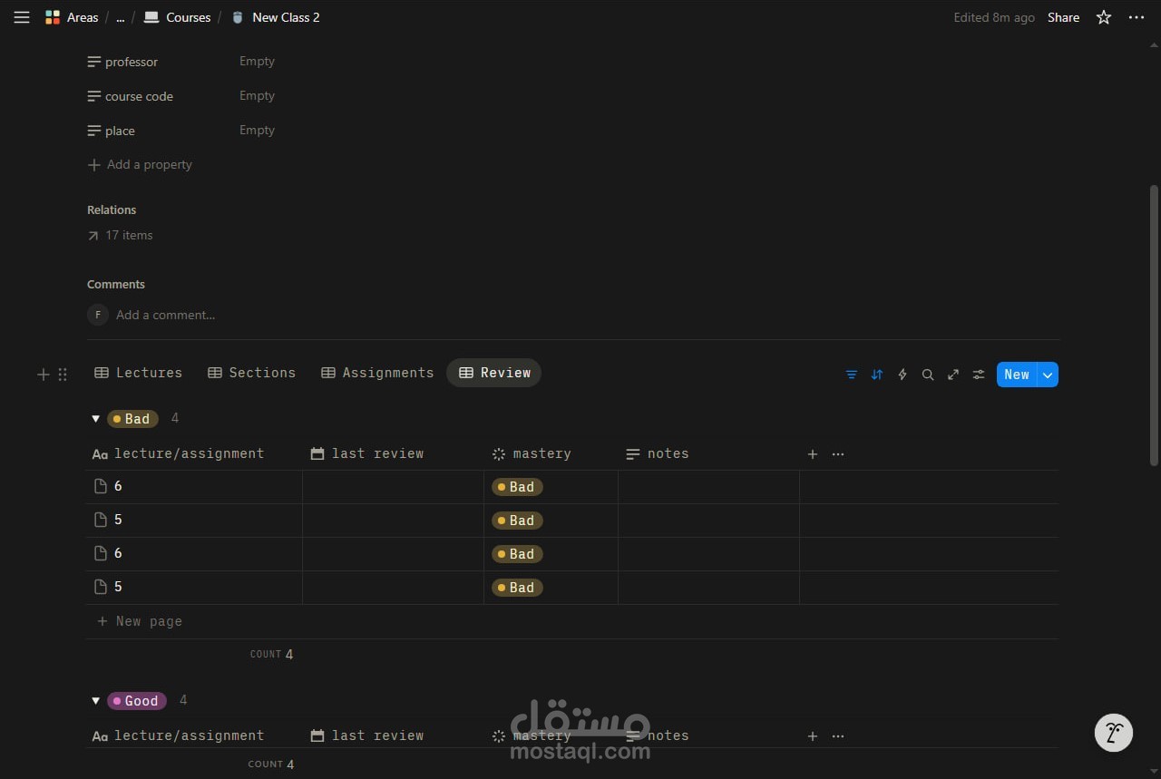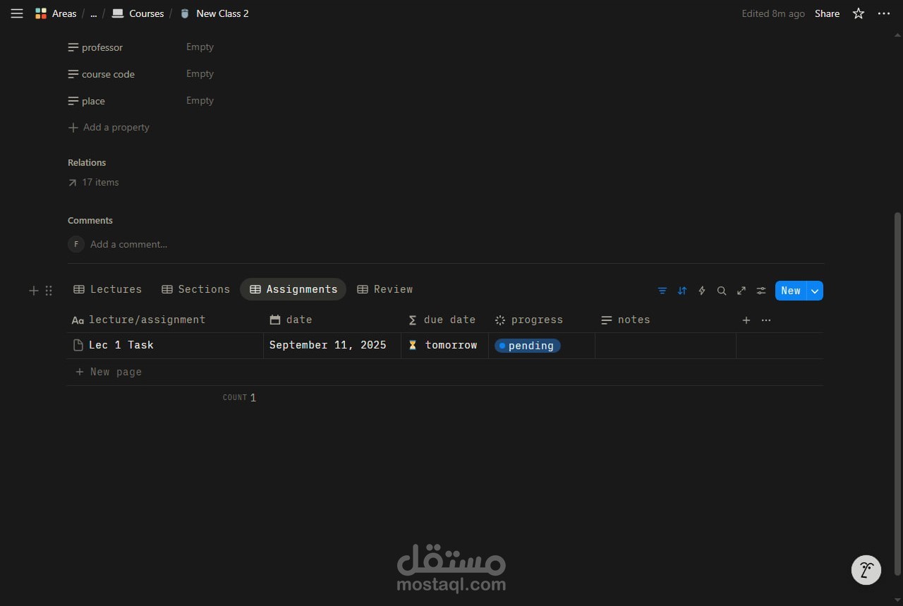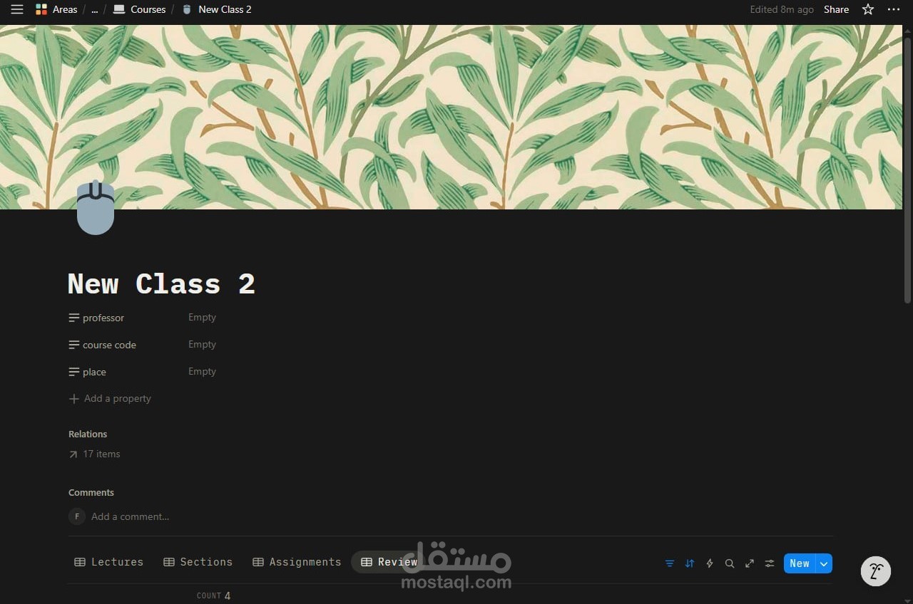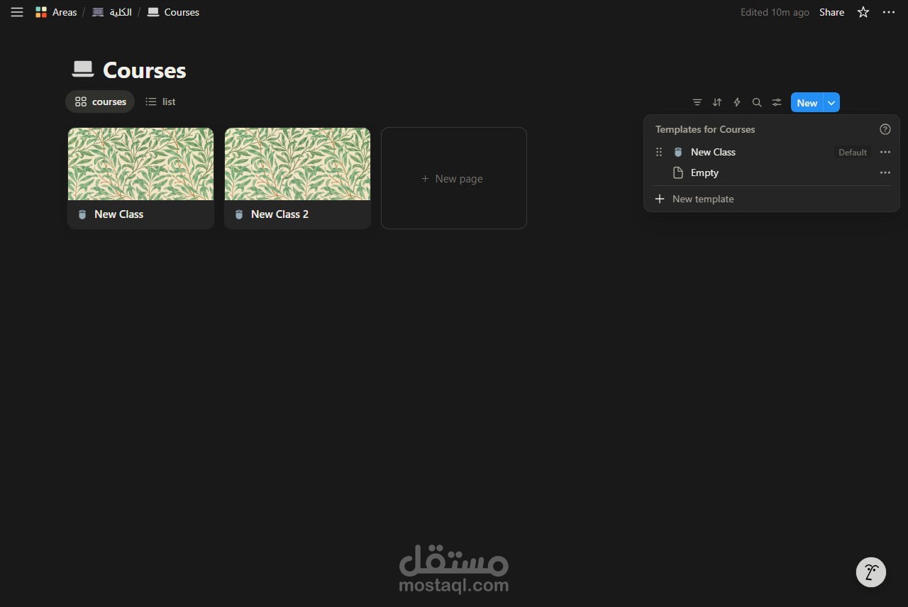 قمت بتصميم وبناء نظام شامل على منصة Notion لإدارة العملية الدراسية وتنظيمها بشكل احترافي ومرن.