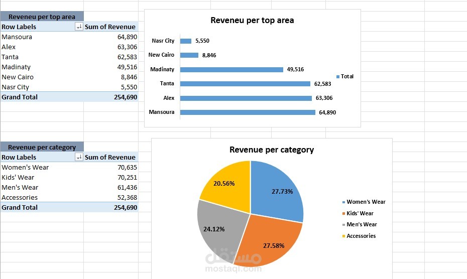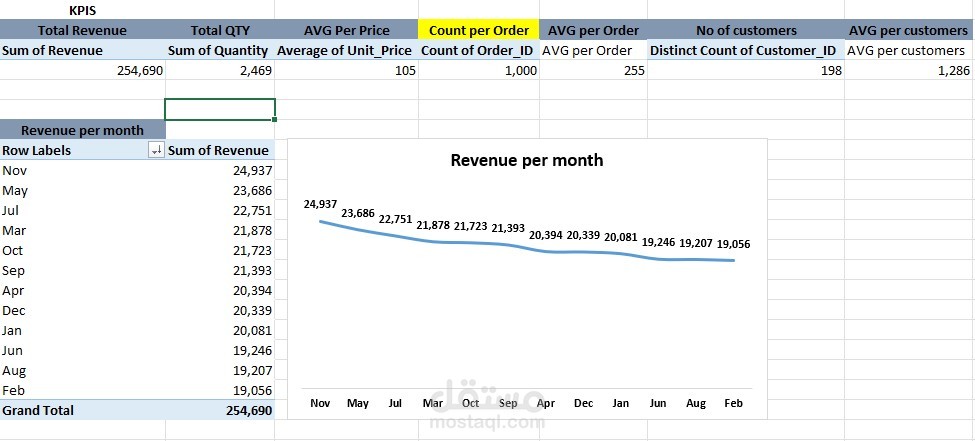 قمتُ بتنفيذ مشروع تحليل بيانات المبيعات وتصميم لوحة مؤشرات تفاعلية باستخدام برنامج Excel لصالح شركة Town Team المتخصصة في بيع الملابس بالتجزئة. الفكرة من العمل كانت تقديم أداة ذكية تساعد الإدارة على تتبع الأداء بسهولة من خلال مؤشرات رئيسية (KPIs) ورسوم بيانية ديناميكية توضح اتجاهات المبيعات وأفضل المنتجات والمناطق. اعتمدتُ في التنفيذ على خطوات منظمة تبدأ من تنظيف وتجهيز البيانات، مرورًا بإنشاء Pivot Tables & Charts، ثم تصميم لوحة مؤشرات واضحة وسهلة الاستخدام تتيح فلترة وتحليل النتائج بشكل فوري، مما يوفّر للإدارة رؤى دقيقة تدعم اتخاذ قرارات مبنية على البيانات.