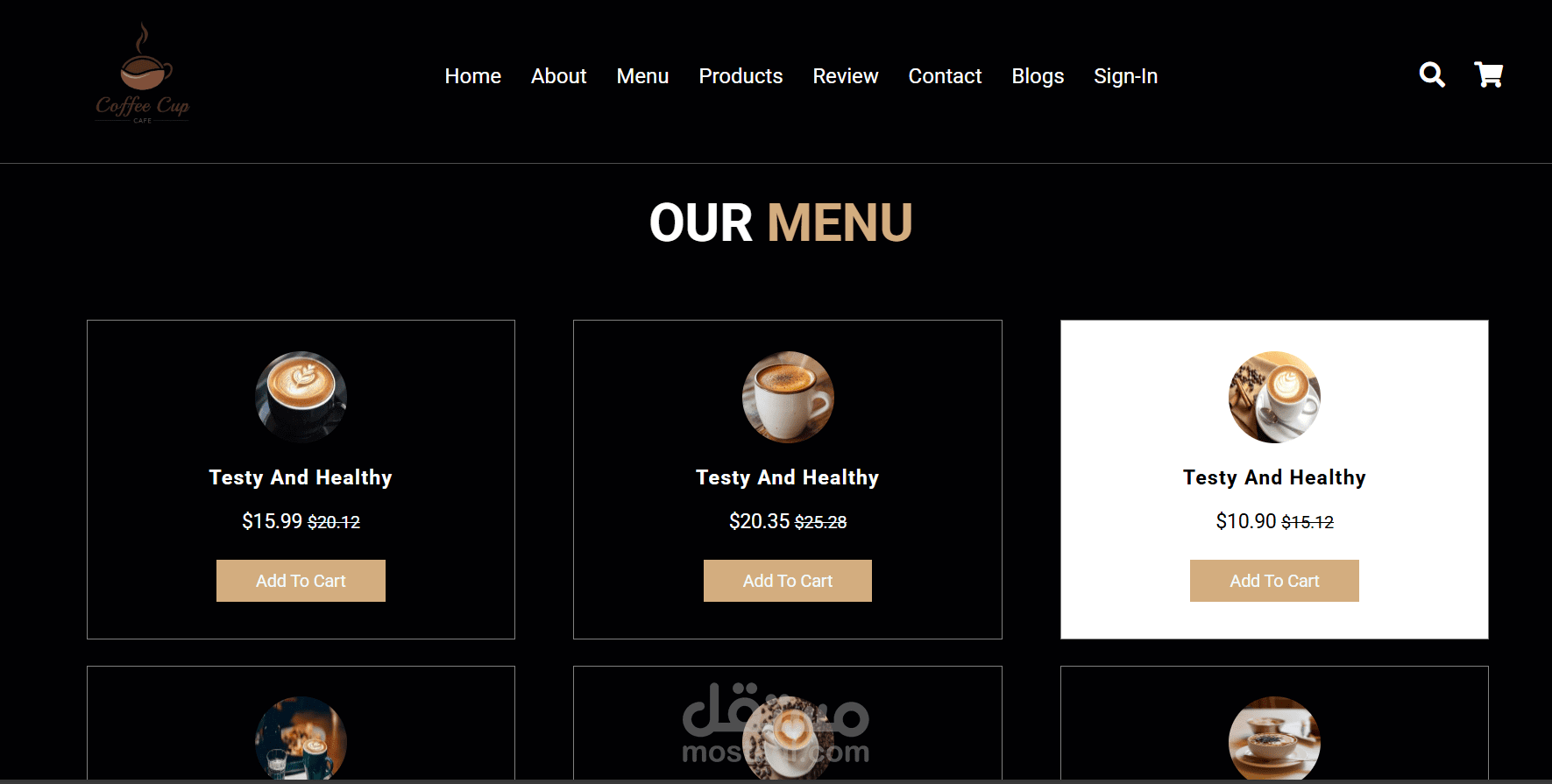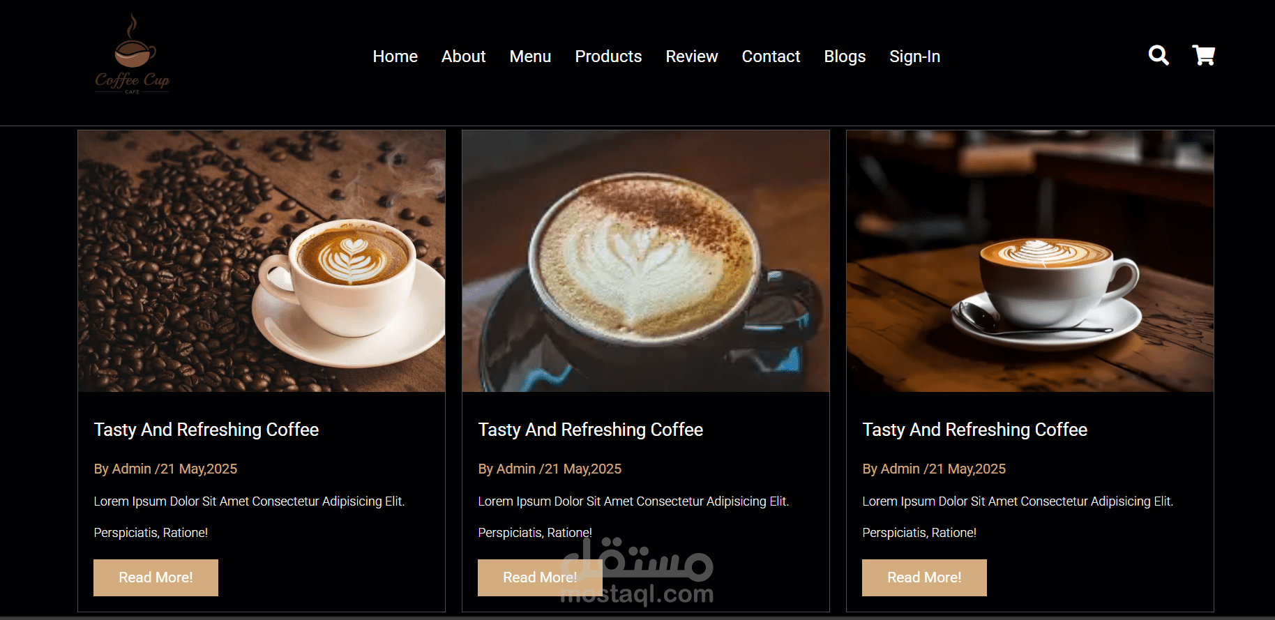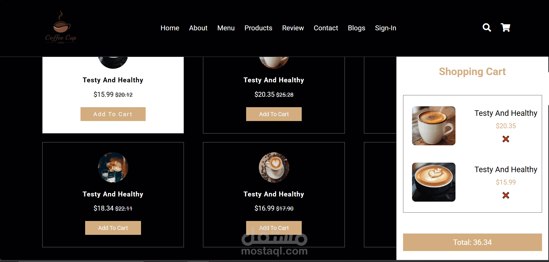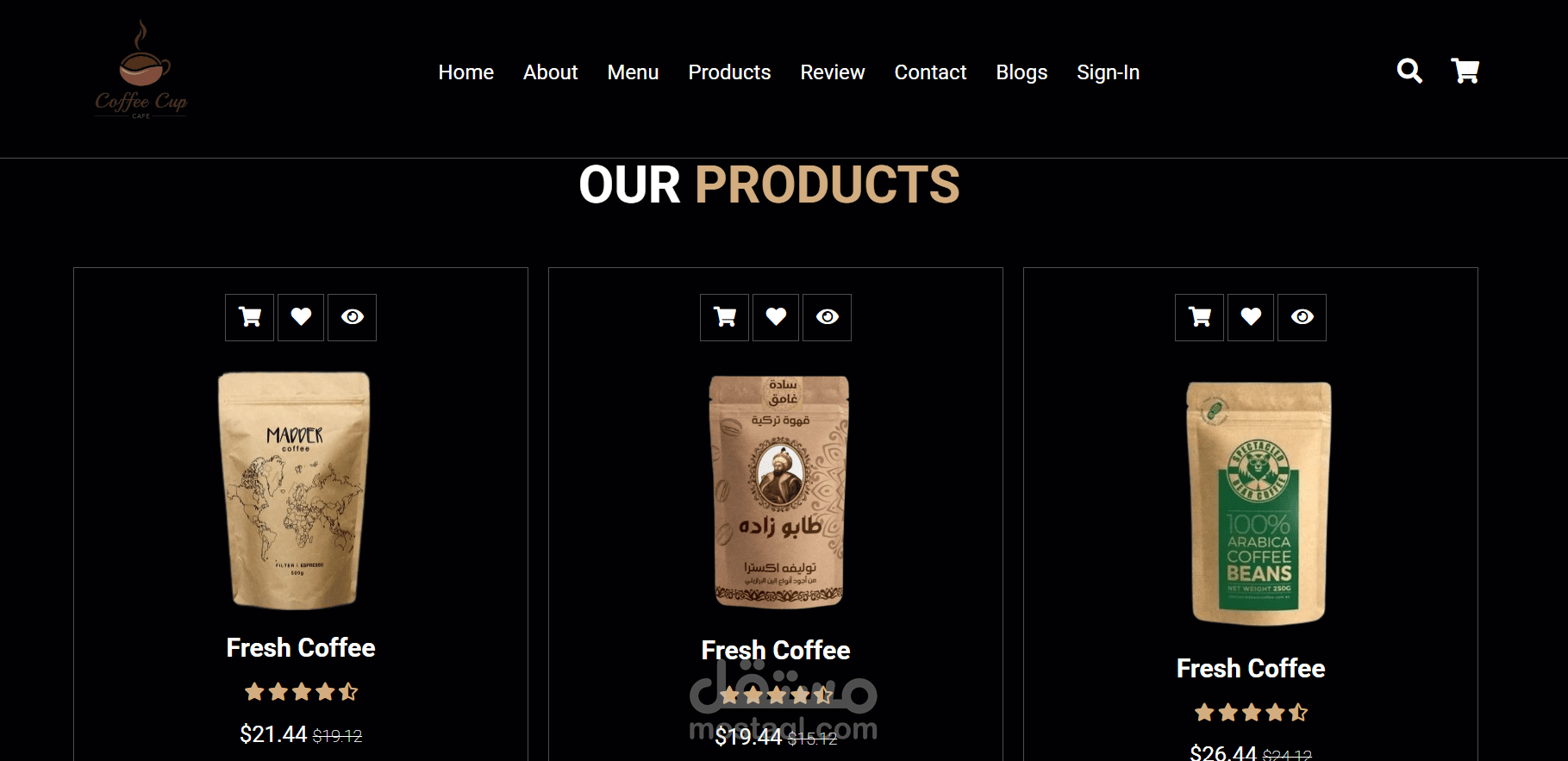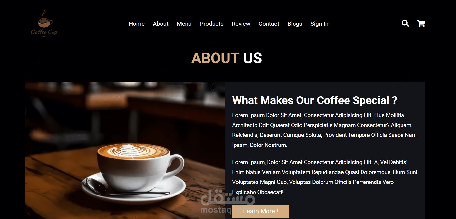 موقع القهوة الذي قمت بتطويره يقدم تجربة تسوق ممتعة وسهلة لمحبي القهوة. يحتوي الموقع على صفحات أساسية تشمل: الصفحة الرئيسية (Home) التي تعرض أبرز المنتجات والعروض، وصفحة المنتجات (Products) لتصفح وشراء أصناف القهوة المختلفة. يمكن للمستخدمين التسجيل والدخول عبر Sign In للوصول إلى حساباتهم الشخصية وإدارة مشترياتهم، مع سلة التسوق (Shopping Cart) لتسهيل عملية الشراء.