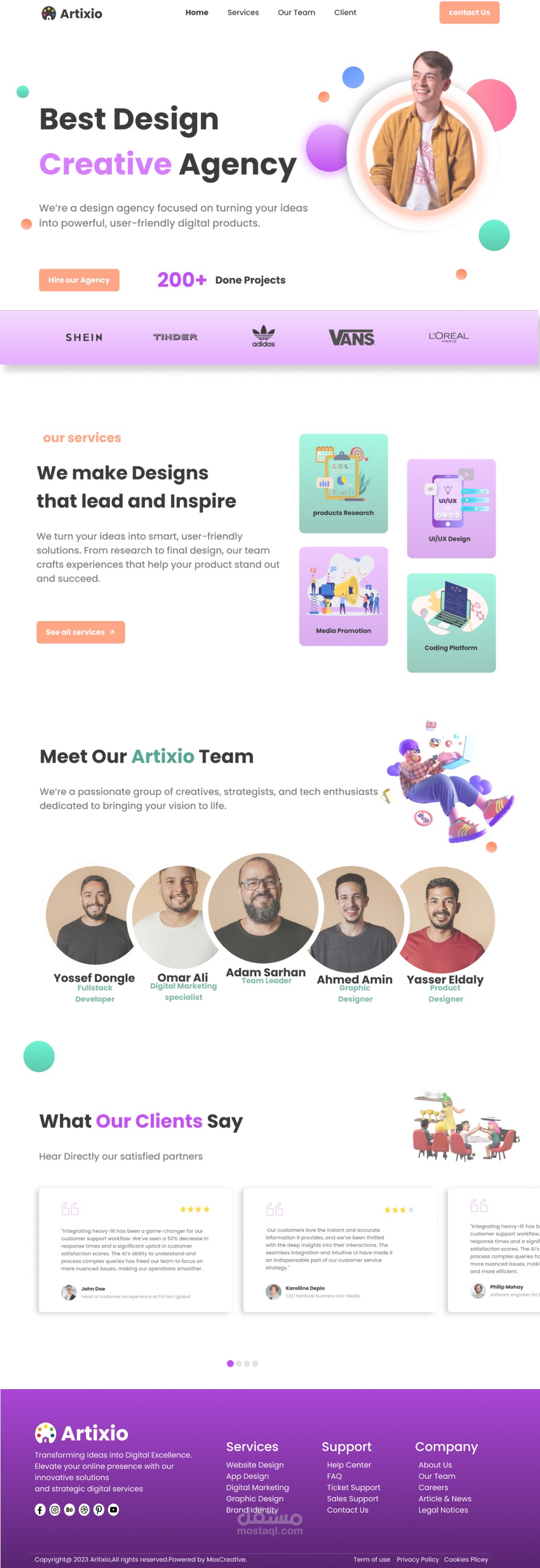 تم تصميم صفحة الهبوط دي لوكالة إبداعية اسمها Artixio، وكان هدفي الأساسي هو إنشاء تصميم بسيط، عصري، وسهل الاستخدام للمستخدم.