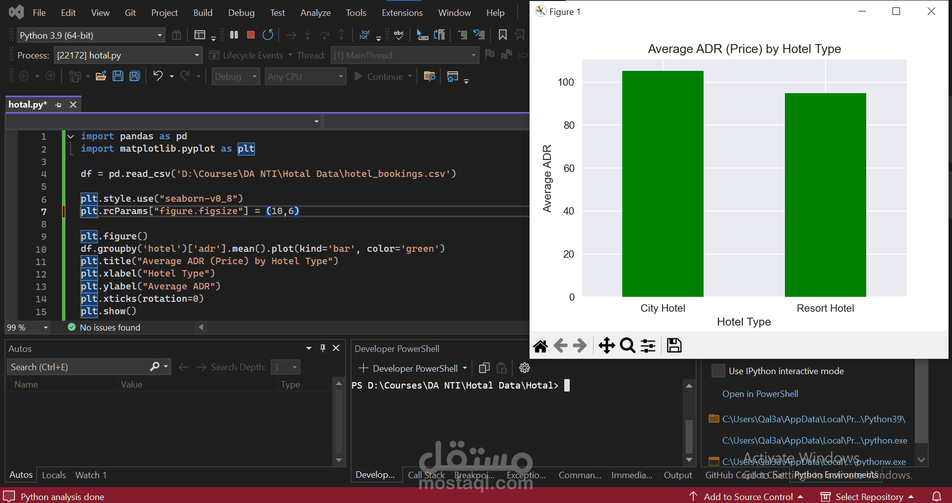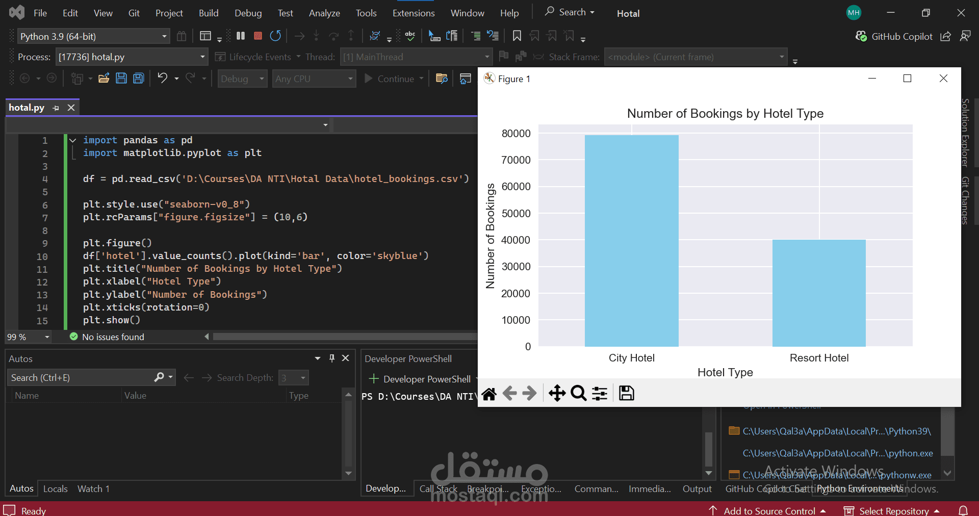 I wrote a Python script to analyze hotel booking data using two main libraries: pandas to read and handle the dataset.