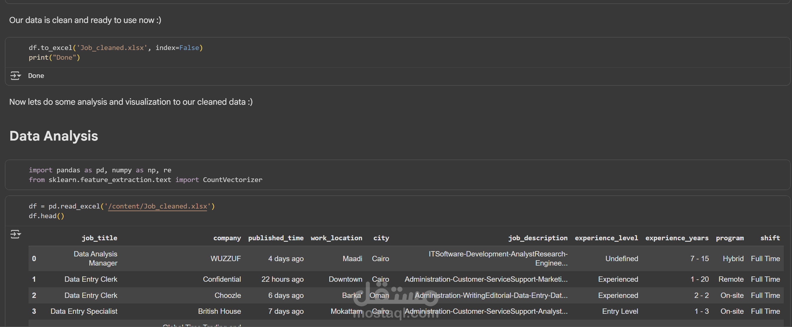 The final cleaned dataset helped us explore broader job market trends in Egypt.