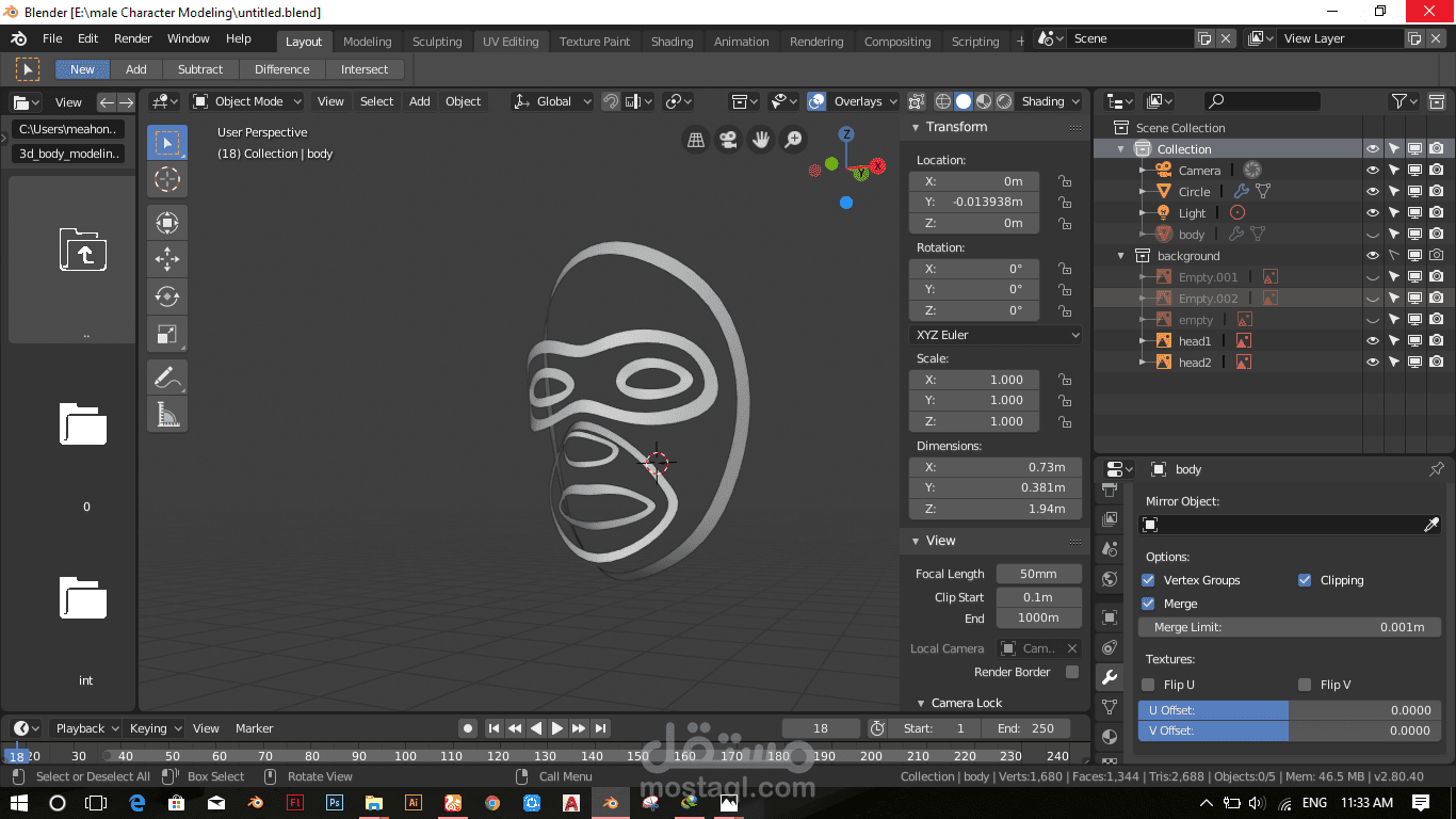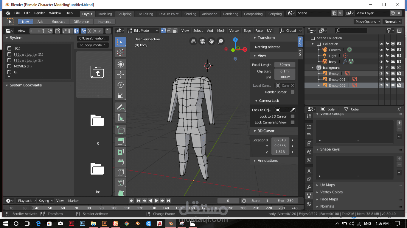 تصميم ثلاثي الأبعاد لشخصية رجل بواسطة برنامج البلندر 2.8 مع مراحل العمل