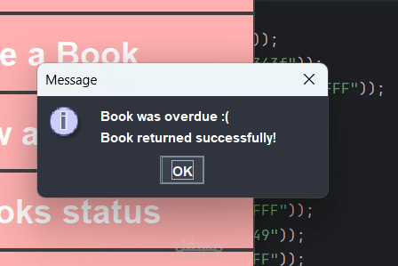 منطق الاستعارة والإرجاع: يشمل التحقق من المعرّفات، حساب فترات الاستعارة، كشف التأخير، ومعالجة الأخطاء عند الإدخال غير الصحيح.