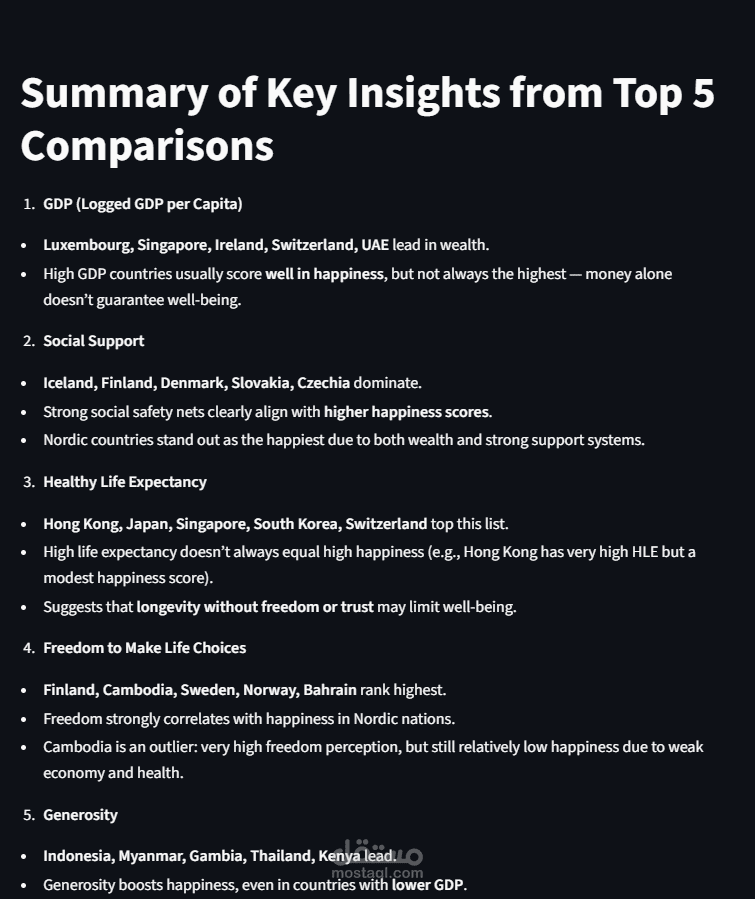 Analyzing the World Happiness Report 2023 to explore global well-being trends. Examined key factors like GDP, social support, life expectancy, freedom, generosity, and corruption, highlighting drivers of happiness with interactive visualizations for clear insights.