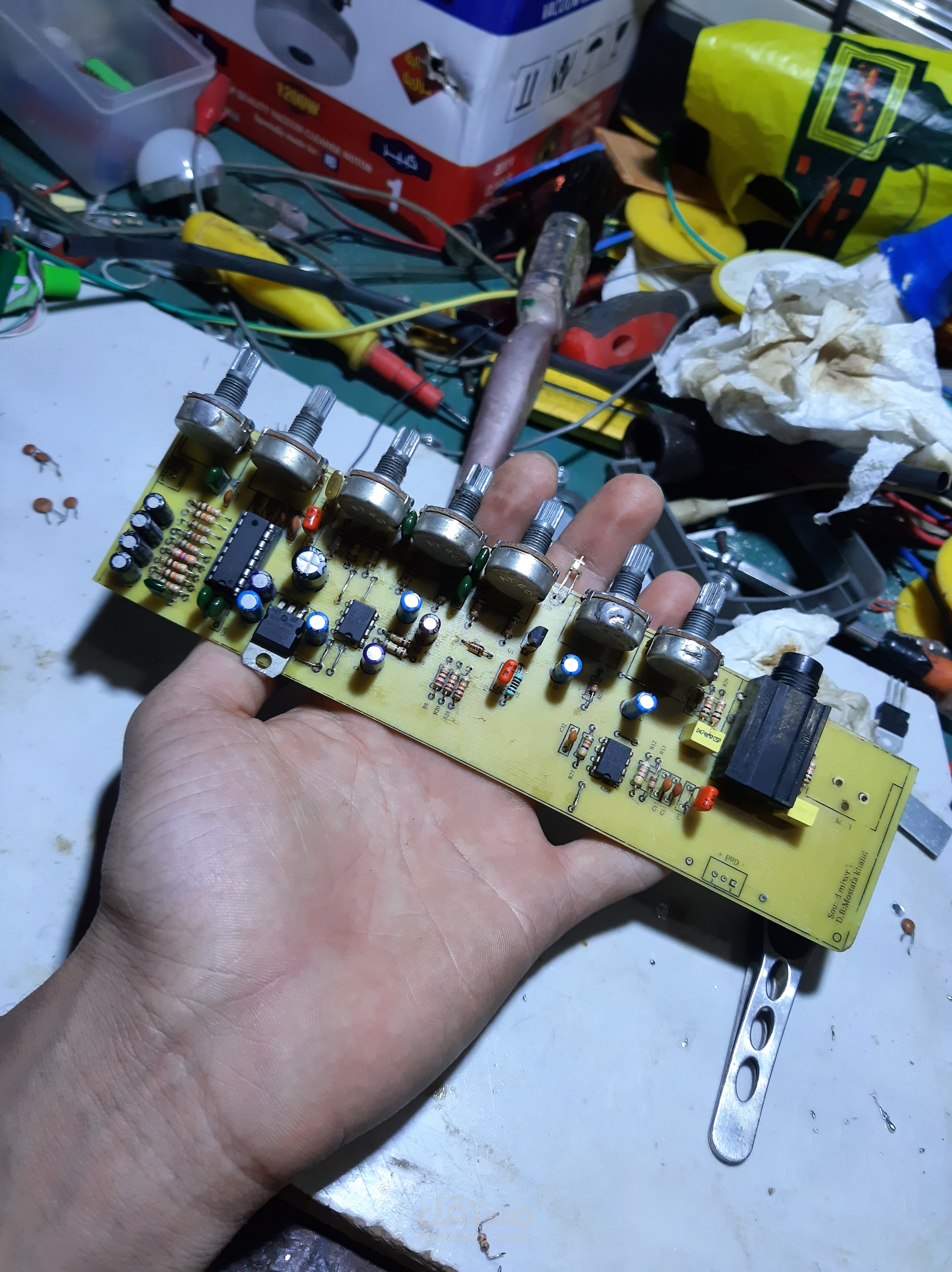 A 2-input Dynamic microphone pre-amplifier with 3-band tone controller and echo control.