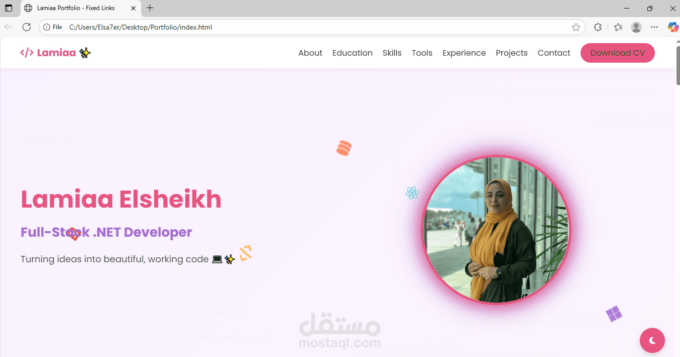 This is a personal portfolio website that I designed and developed using HYML and CSS ,and JavaScript .It showcases my skills , experience , and previous projects in a clean and responsive layout . The site include smooth animations and interactive elements to enhance user experience. I built it from scratch with a focus on performance , accessibility , and modern design principles . The project is hosted on GitHub and reflects my front-end development capabilities