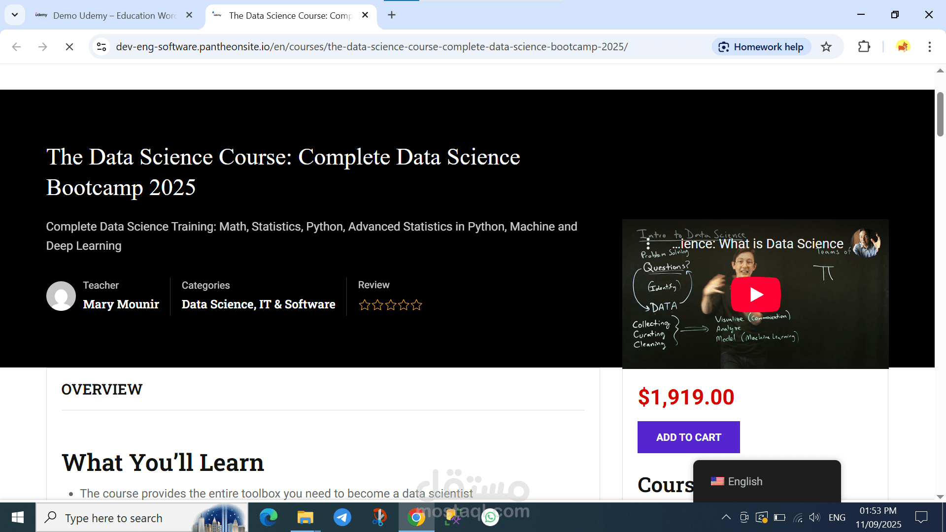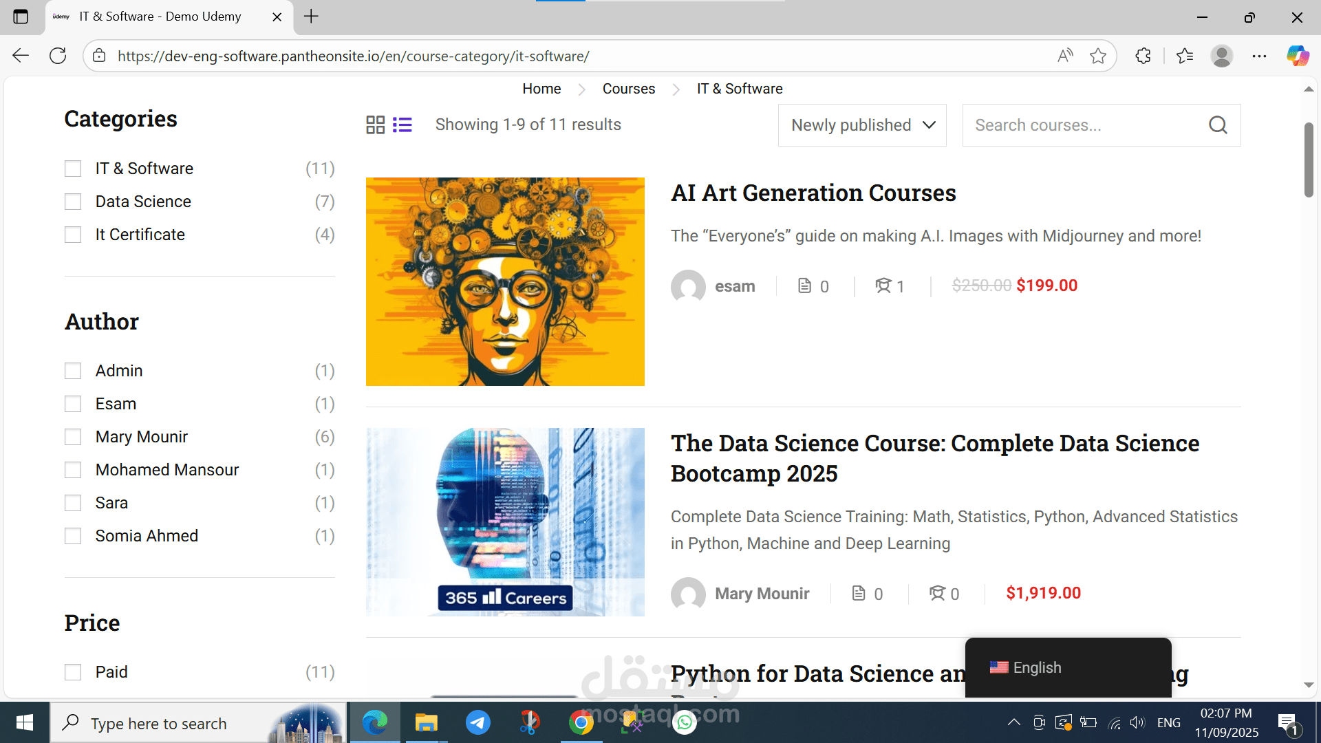 قمت بتصميم وتطوير موقع تعليمي محاكي لموقع Udemy باستخدام ووردبريس.