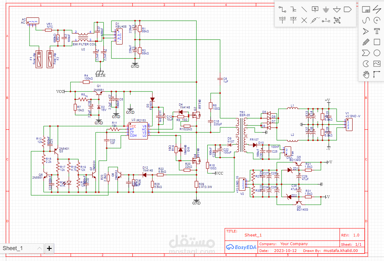 35v 0 -35v لتغذية دائرة المكبر الرئيسية