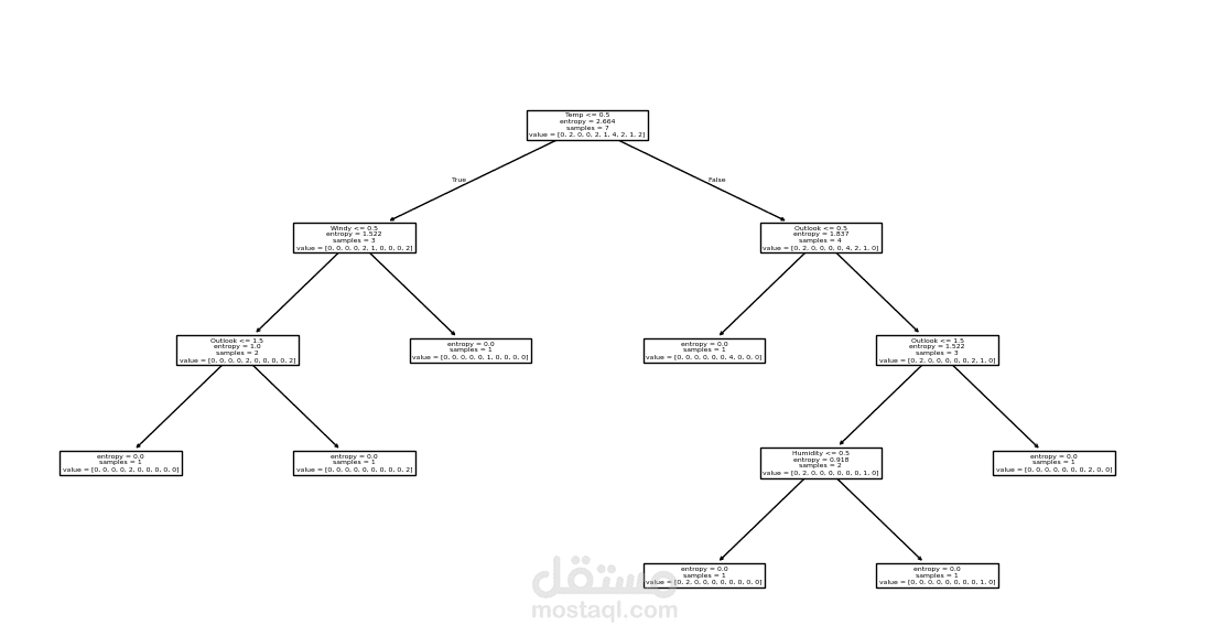 رسم وتحليل أشجار القرار (Decision Trees) مع توضيح مسارات القرارات.