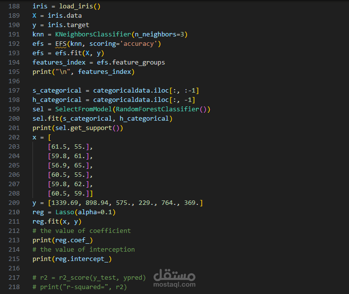اختيار الخصائص (Feature Selection): بالاعتماد على اختبارات إحصائية (مثل Chi-square وR-regression) أو باستخدام نماذج مثل Random Forest وLasso.