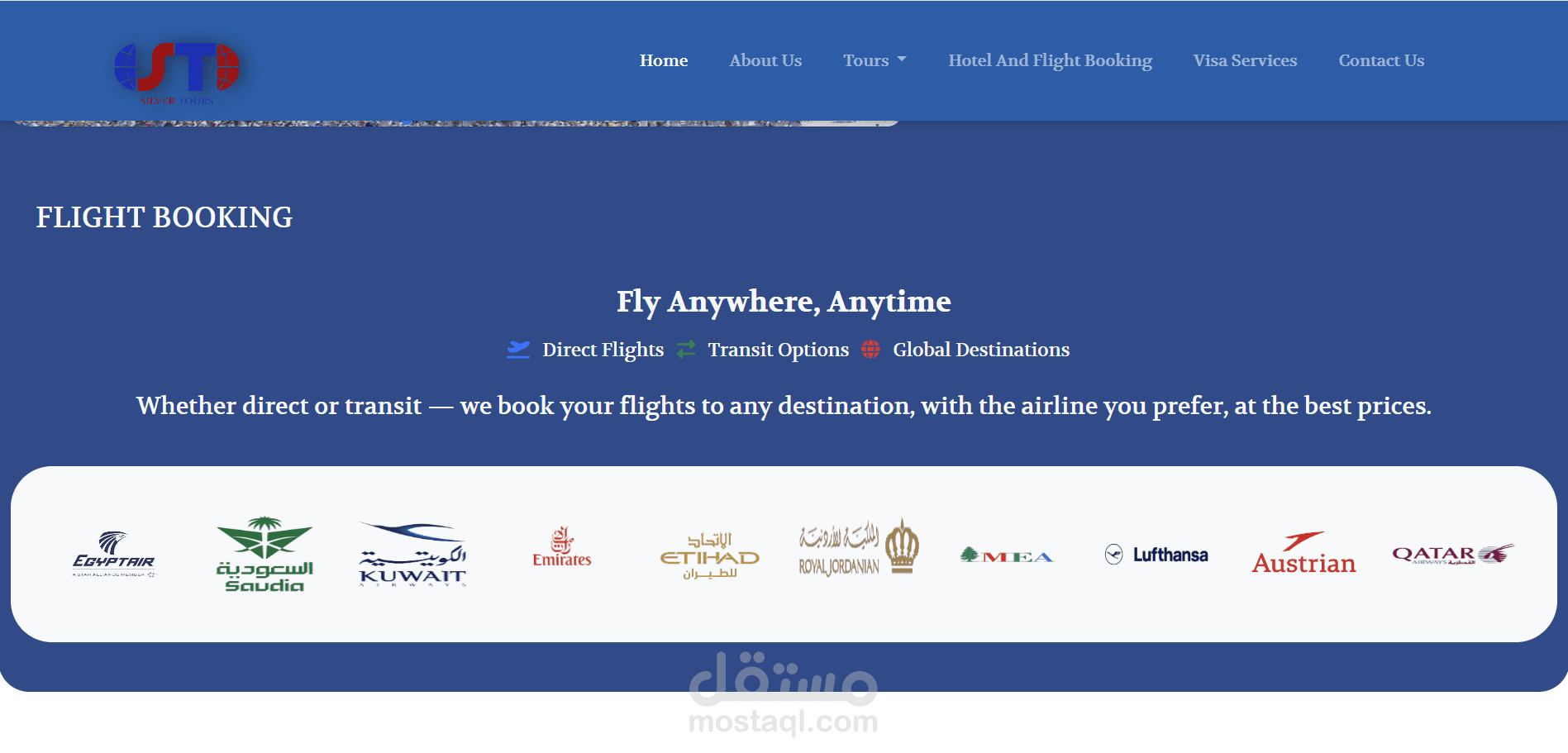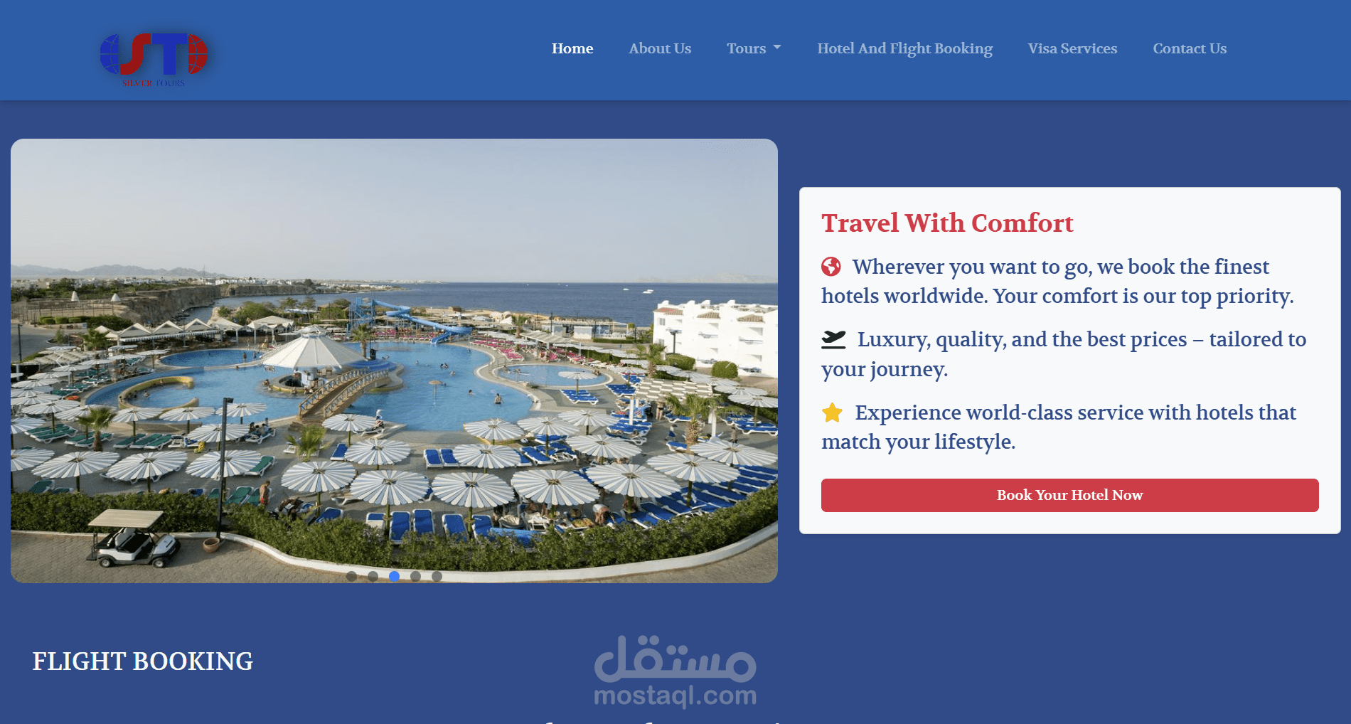 صفحة ويب لشركة سياحة مصرية مع مواعيد الحجز و تفاصيل الرحلات