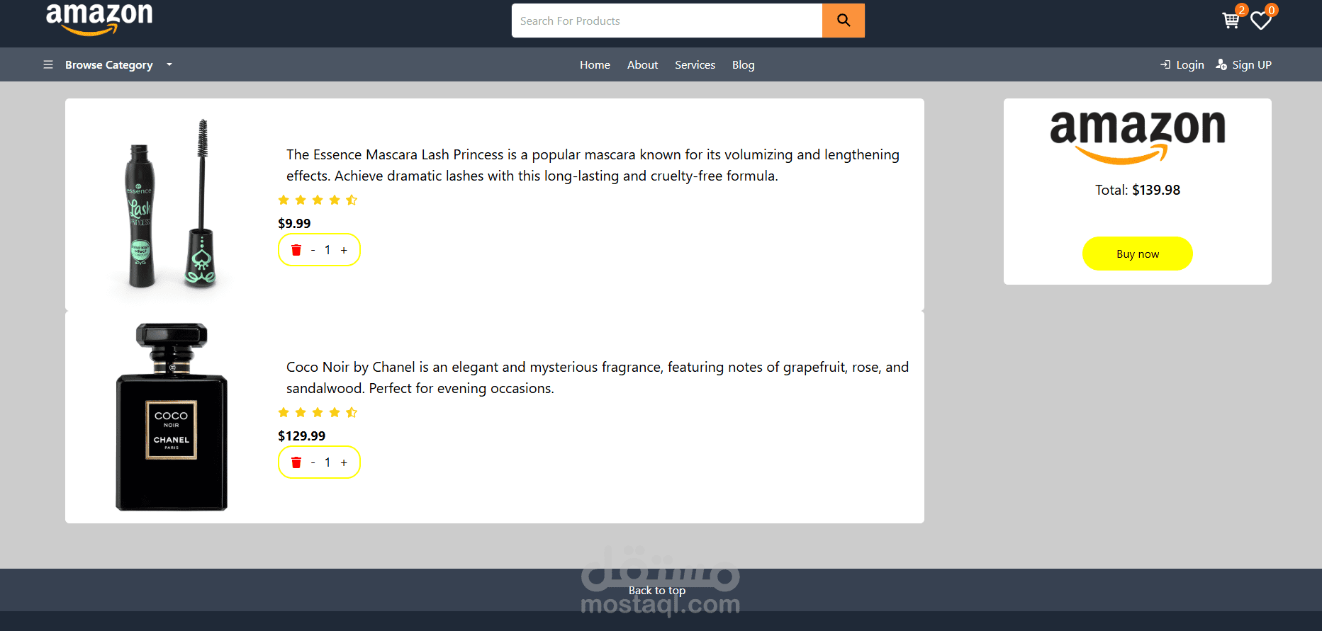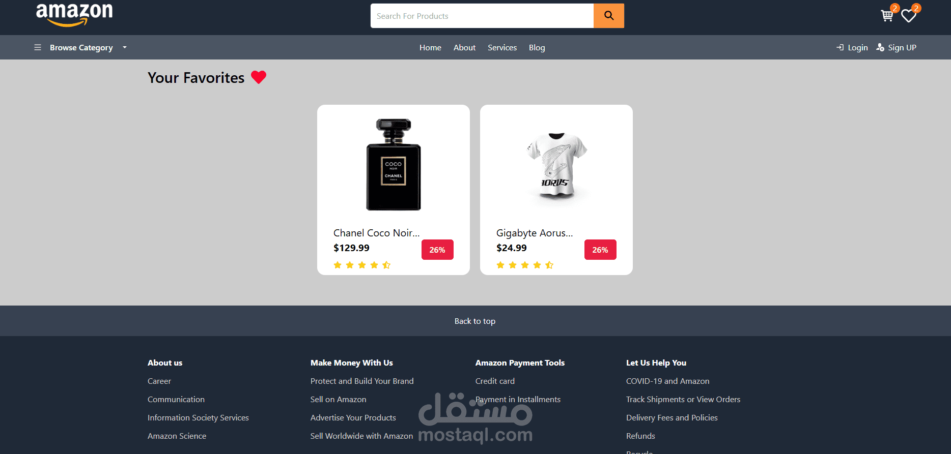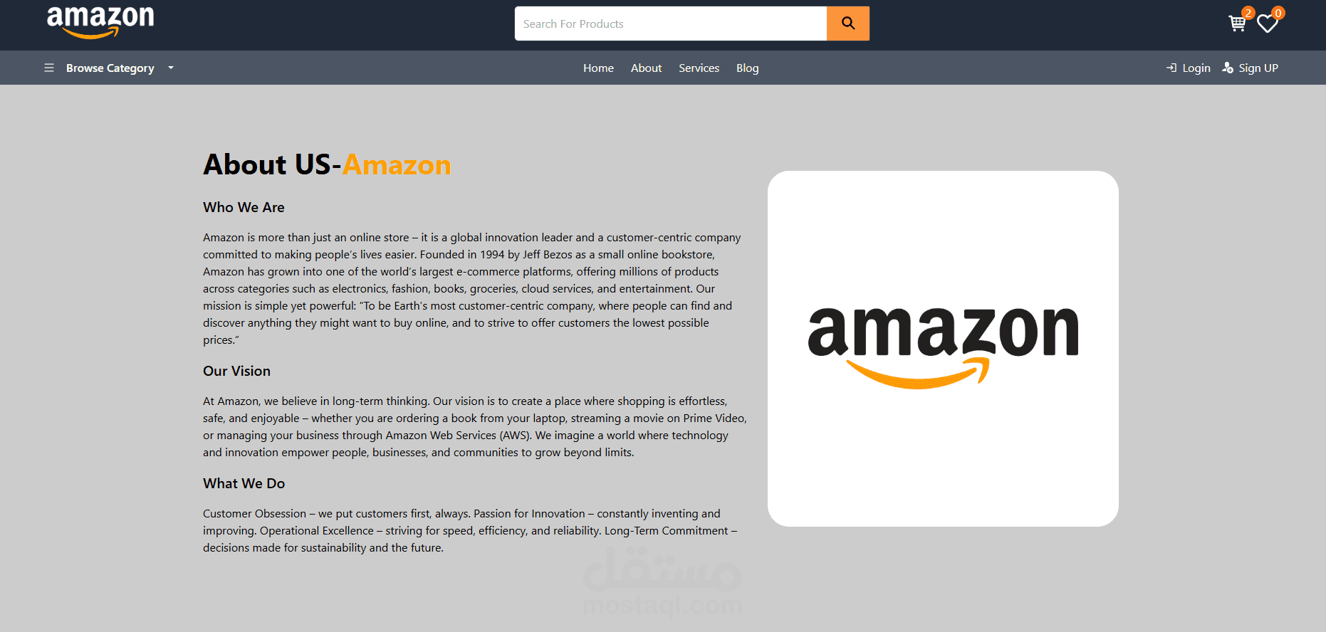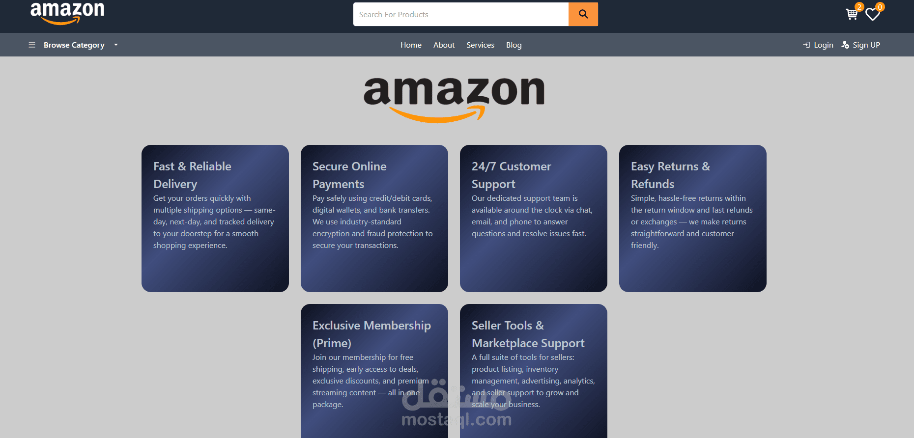 متجر مستوحة من Amazon هو منصة تجارة إلكترونية متكاملة بُنيت بواجهة حديثة وسهلة الاستخدام، تهدف لتوفير تجربة تسوق سلسة ومرنة للمستخدمين على مختلف الأجهزة. يتميز المتجر بتصميم منظم يُسهل على الزوار تصفح الأقسام والوصول إلى المنتجات بسرعة، مع واجهة تفاعلية وأداء جيد يدعم تجربة مستخدم مريحة.