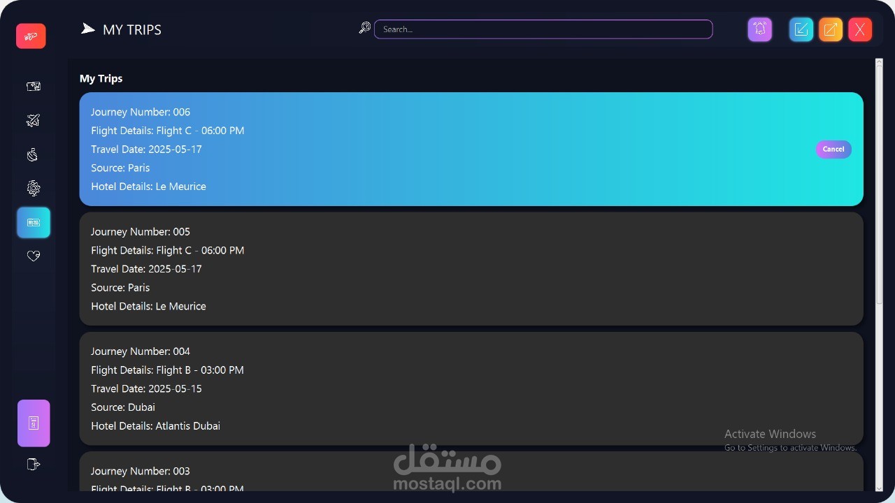 My Trips page - securely saves and retrieves users' past and upcoming trips using a personalized database system.