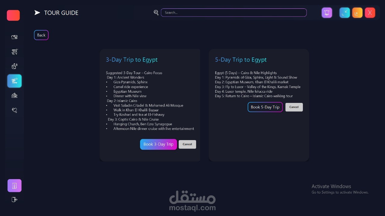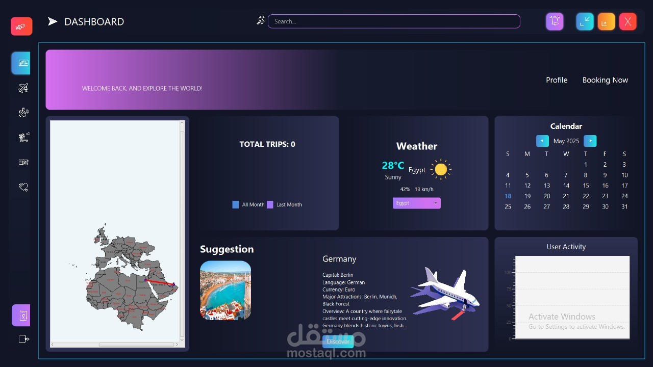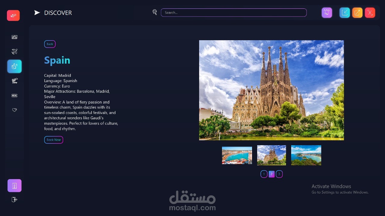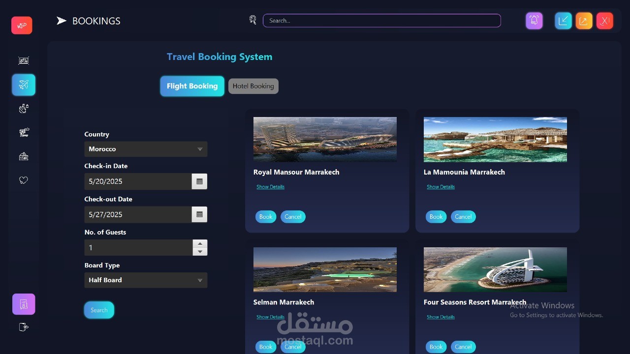Booking page - travel your way, with ease and flexibility. Either book a flight, a hotel, or a tour guide trip.
