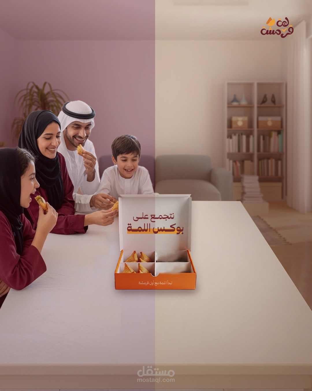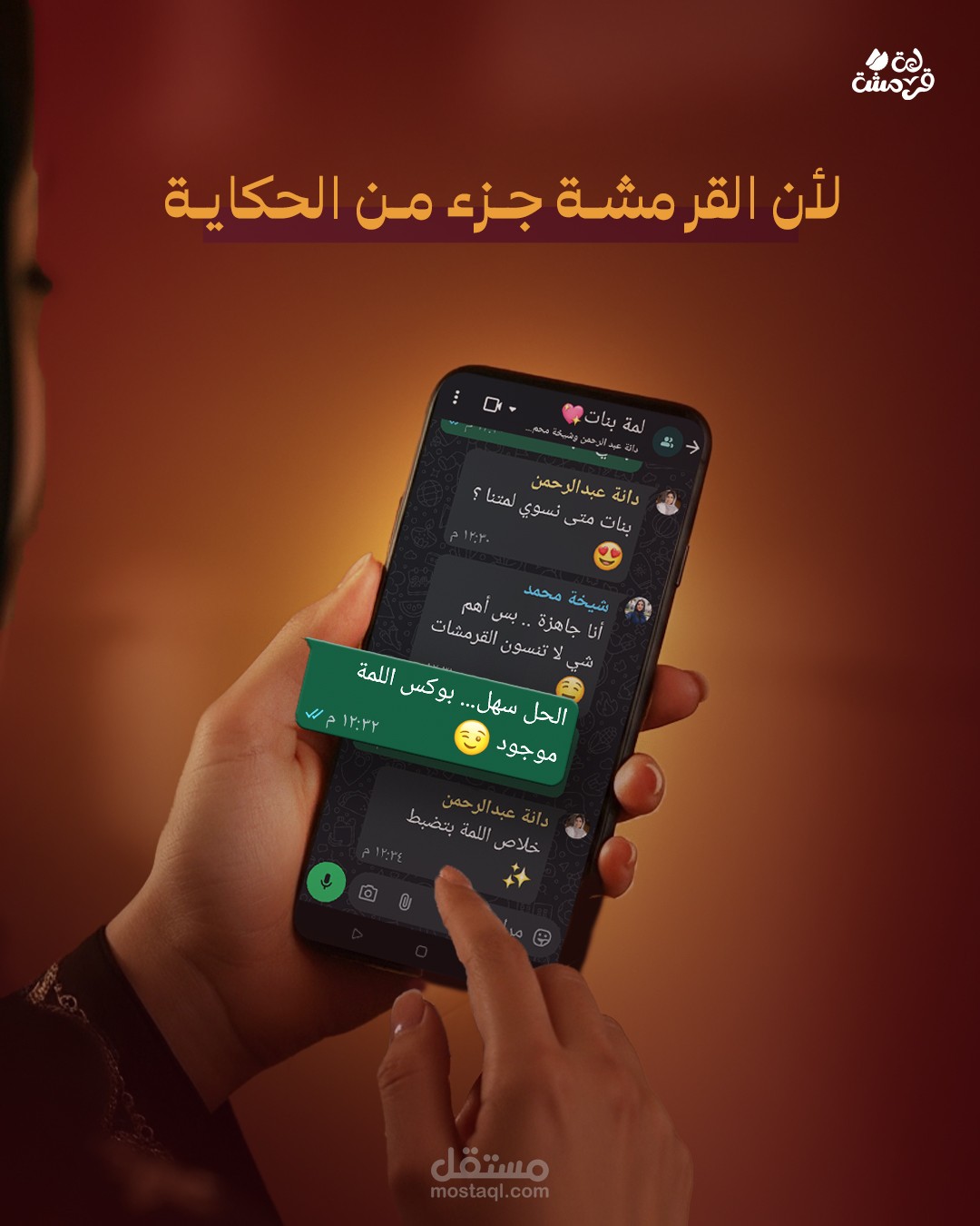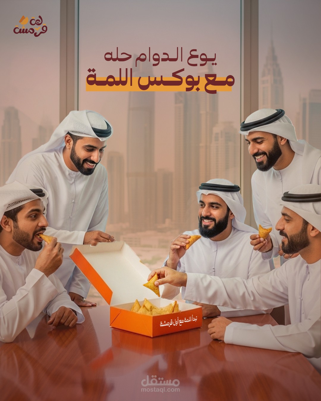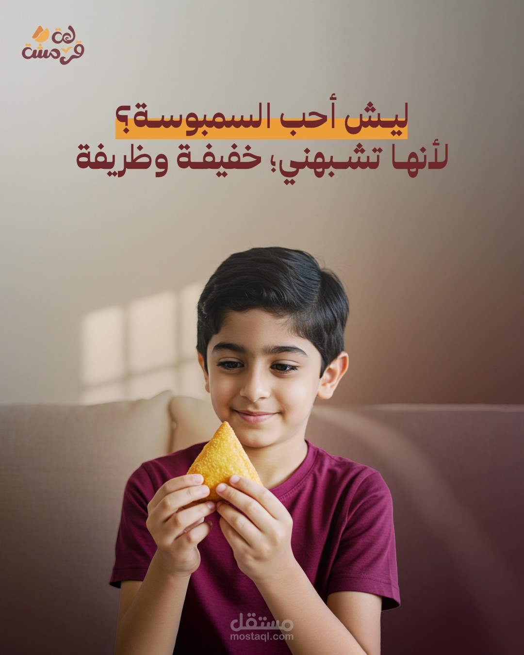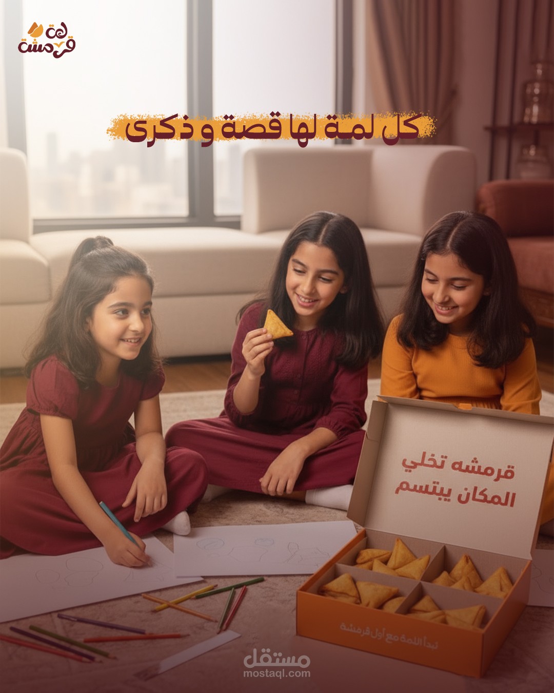 مت بتصميم مجموعة من تصاميم السوشيال ميديا لصالح لمة قرمشة، وهي شركة إماراتية متخصصة في صناعة السمبوسة، تعتمد في هويتها الإعلانية على مفهوم اللمة والأجواء الاجتماعية.