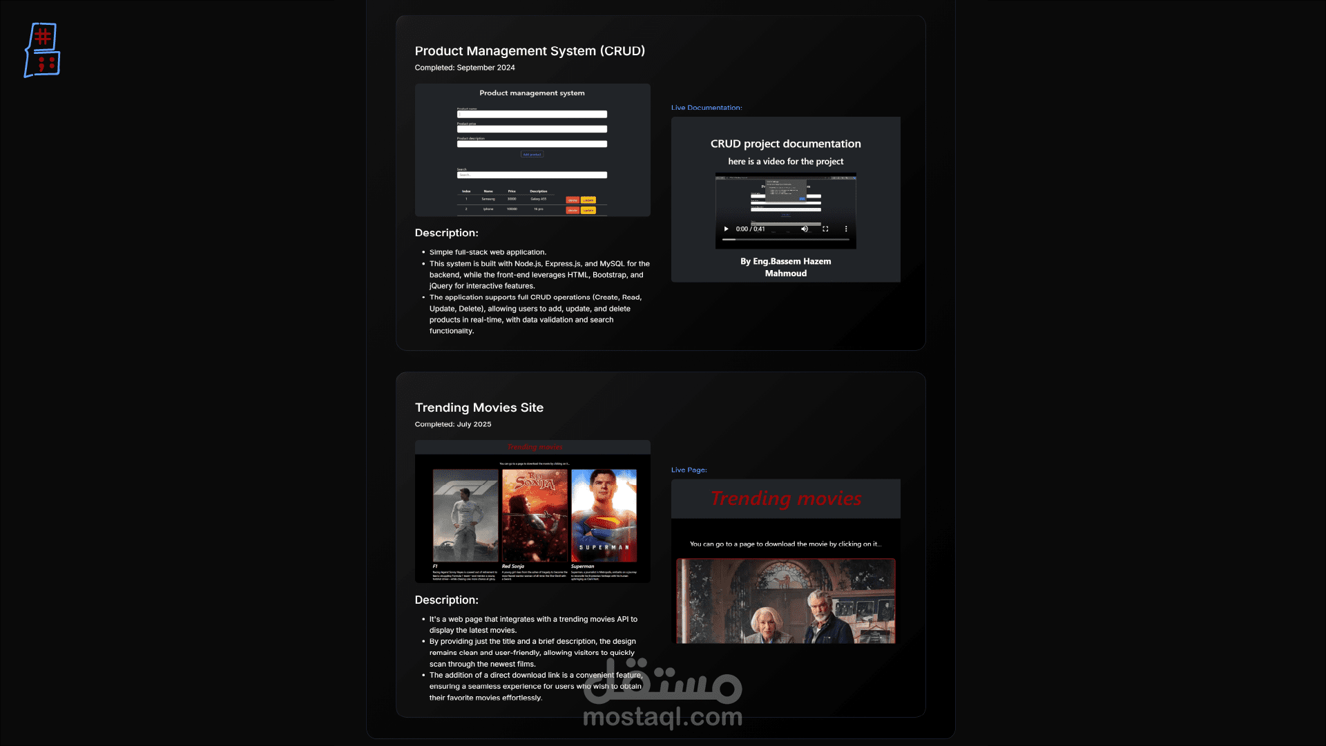الموقع ليس مجرد صفحة لعرض المعلومات، بل هو تطبيق ويب متكامل يعكس القدرة على بناء حلول ويب شاملة من الواجهة الأمامية إلى الواجهة الخلفية.